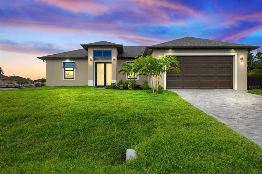 One or more photo(s) has been virtually staged. Discover your dream home in the highly sought-after NW Cape Coral area with this brand new construction pool home, offering 1,450 sq ft of luxurious living space. This beautiful property features 3 bedrooms and 2 bathrooms, perfectly designed for modern living. Hurricane IMPACT windows & doors throughout. NOT located in a flood zone! Situated on a prime corner lot, this home boasts upgraded landscaping, a stunning paved driveway, and a pool deck. The open floor plan seamlessly connects the living, dining, and kitchen areas, highlighted by elegant tile flooring throughout. The modern kitchen is equipped with sleek stainless steel appliances, making it perfect for cooking and entertaining. Step outside to your private oasis with a beautiful pool, ideal for relaxing and hosting guests. This home combines luxury and comfort with high-quality finishes and thoughtful upgrades. Don’t miss the opportunity to own this stunning property in a fantastic location. Schedule your private showing today and start living the Florida dream!