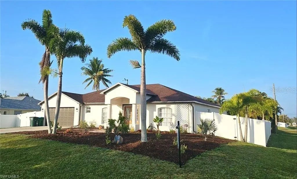 SELLER IS VERY MOTIVATED AND IS OFFERING BUYER CONCESSIONS. ASSESSMENTS ARE IN AND PAID. NO FLOOD INSURANCE REQUIRED, this is a must see!!! Meticulously Maintained**4 bedrooms plus Office with **3 full bathrooms Situated on a generous corner lot, in a quiet neighborhood, close to shops and restaurants. Vaulted ceilings and the seaming-less connection of the kitchen and great-room and tile floors throughout the whole house. The finished garage offers ample room for entertainment or storage. A split bedroom floor plan with a freshly remodeled master bath with dual sinks. Enjoy beautiful sunsets with your favorite beverage on your fully screened Lanai that comes complete with outdoor kitchen, new BBQ grill, plenty of seating, heated pool, surrounded by a beautiful privacy fence. Included in the beautifully landscaped yard you will find cherry, orange, mango, and avocado trees. Many updates include, new AC, Pool heater and privacy fence in 2021, New Refrigerator, Washer & Dryer, water heater, ceiling fans and lighting in 2022. New roof, Lanai screens, and landscaping in 2023. Updated pool tile and surface painting in 2024. City Water and Sewer ASSESSMENTS ARE IN AND PAID. NO FLOOD INSURANCE REQUIRED.