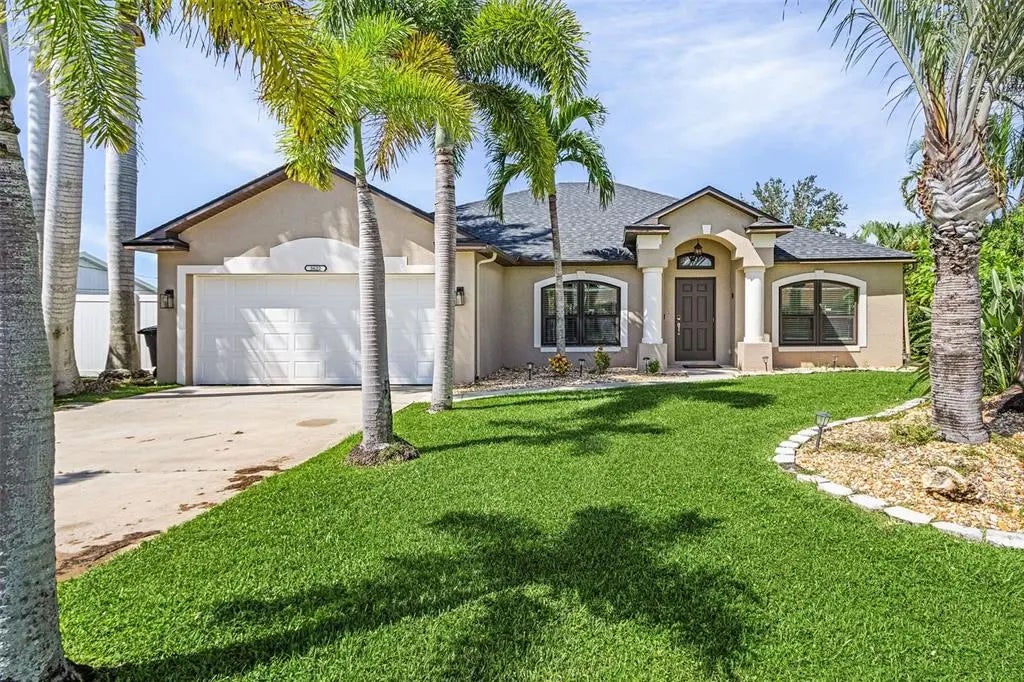 UPDATED HEATED POOL HOME IN SW CAPE - Over $80k in recent upgrades! This wonderful home boasts 4 bedrooms, PLUS a large office/den/flex room, and 2 bathrooms, offering spacious comfort for all your needs. With over 2,100 square feet under air and even more covered lanai seating and kitchen space. This property provides ample space for relaxation and entertainment. As you enter, you're greeted by expansive cathedral ceilings, the warmth of new LVP flooring, fresh paint, and modern style. Step outside into your private retreat where you can unwind under the cover of your expansive outdoor kitchen and where the sparkling blue pool awaits, inviting you to unwind and enjoy the Florida sunshine. Additionally, the landscaping has been completely revitalized. There are lush landscaping plants and palm trees everywhere creating a picturesque setting to relax and entertain. New roof in 2022, New HVAC system in 2022, New pool heater in 2022, New salt system for pool in 2023. You can’t beat this location, close to everything that SW FL has -- BEAUTIFUL sandy beaches, dining, shopping and so much more! If renting is desired, there is already over $38k in rental income booked for the 24/25 winter season!