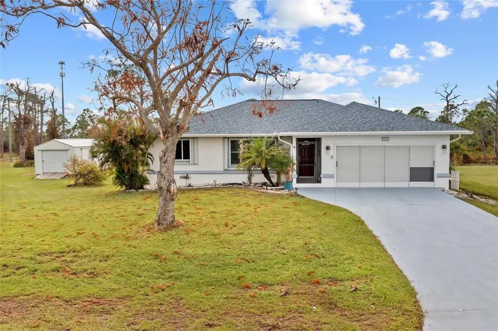Nestled in desirable Rotonda Shores, this charming 2-bedroom, 2-bath, 2-car garage home offers a serene setting with breathtaking views of a 180-acre nature preserve. With quick access to boating adventures and stunning beaches, this home is a dream come true for those who love to explore. Step inside to discover high ceilings, plantation shutters, and contemporary ceiling fans that enhance the spacious feel throughout. The open floor plan features ceramic tile flooring, a stylish kitchen with raised panel light cabinetry, stone counters, a tile backsplash, and stainless appliances. Enjoy casual meals at the breakfast bar or in the dining nook, which opens to the pool area through a large slider. The split floor plan ensures privacy, with a generous primary suite boasting a walk-in closet and an en-suite bath with a walk-in shower. The guest bedroom is equally inviting, with a separate full guest bath nearby. The outdoor entertaining area is a true highlight, featuring a covered lanai and a 40-foot solar-heated saltwater lap pool. Perfect for exercise or relaxation, the pool area offers stunning nature views and a true southern exposure for endless Florida sunshine. Additional outdoor features include a screened front entrance, screened garage, and an outdoor shed for extra storage. Practical amenities include accordion hurricane shutters, exterior landscaping, solar pool heat installed in 2022, a new roof from 2022, an RV outlet installed in 2020, and a repipe of hot and cold water lines. Plus, there's plenty of room to park your boat or RV, with an RV outlet ready to go. Located on a quiet cul-de-sac street, this home offers quick access to Boca Grande, the beautiful Gulf Coast beaches, numerous golf courses, restaurants, shopping, and parks. It's also conveniently close to the Legion, VFW, and Elks Club, making it a perfect spot for those who enjoy a vibrant community life. Don’t miss this opportunity! Schedule your private showing today!