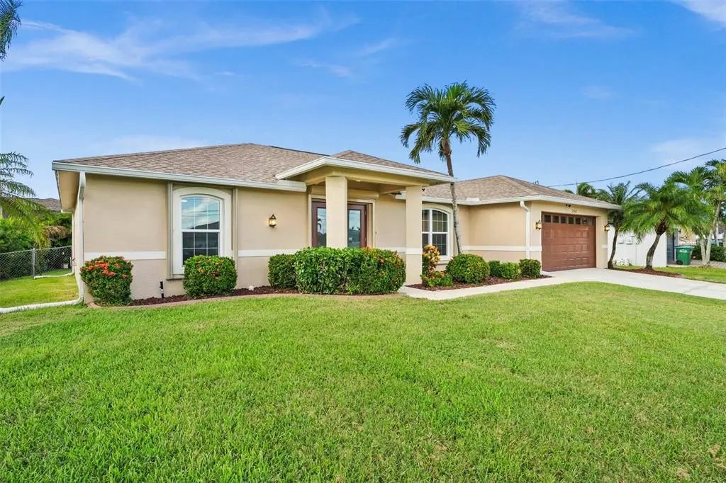This fully remodeled 2023 home offers the look and feel of new construction with modern, high-end finishes throughout. Spanning 1,775 square feet, this spacious 3-bedroom, 2-bath home also includes a dedicated office, perfect for remote work or personal projects. Every inch of this home was updated — right down to the blocks! With a new roof, impact windows and doors, HVAC system, plumbing, electrical, and more, this home offers peace of mind and energy efficiency for years to come. The open-concept, split-bedroom layout has an inviting, open kitchen featuring quartz countertops, stainless steel appliances, a deep farm-style sink, tile backsplash, pantry, and a center island with a breakfast bar. Modern touches like 5-panel frosted glass doors add elegance, while the master bath impresses with a large soaking tub and shower, plus an illuminated mirror for a spa-like experience. Enjoy outdoor living on the extended screened lanai with tile floors and a hot tub, perfect for relaxing evenings. Step into the lush backyard to find a patio with a fire table, ideal for gathering under the stars or grilling a late-night snack. This property is being offered fully furnished ( Everything was purchased in 2023), ready for you to move in and make it home. This home is located in the Surfside neighborhood. Experience the best of Cape Coral living—schedule your private showing today!