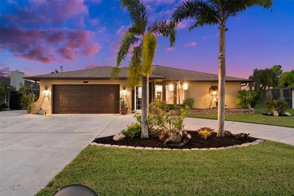 Welcome to your dream waterfront home in Cape Coral! This 3-bed, 2-bath home offers 1,693 sq. ft. of living space with direct Gulf access, perfect for boating enthusiasts. Located on a 130-ft wide canal, it features a private dock with captain's walk, two 10,000 lb. boat lifts, a 1,000 lb. jet ski lift, fish cleaning station, and a tiki bar with a glass-bottom floor. Relax in the private pool with a sun shelf and water features, or cook in the screened outdoor kitchen. Unwind by the fire pit or in the hot tub on the extended lanai. Inside, the kitchen features wood cabinetry, granite countertops, stainless steel appliances, and a new cooktop. The open living area is perfect for entertaining, with sliding doors leading to stunning canal and pool views. The master suite includes an updated en-suite bathroom, while two additional bedrooms share a bath. The garage offers epoxy flooring, built-in storage, and a mini-split A/C. Recent updates include a new water heater, a 2-year-old pool pump, newer A/C ductwork, and a 6-year-old roof. Enjoy extras like a full-home water filtration system, paved patios, and a storage shed. Conveniently located near dining, shopping, and entertainment, this home offers the ultimate Florida lifestyle. Schedule your private showing today!