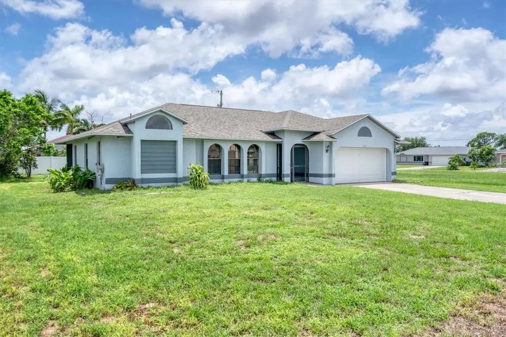 Welcome to your partially updated home, ideally located around the corner from Walmart! This residence features a new roof (2022) and an upgraded hurricane-rated garage door, ensuring safety and peace of mind. Inside, the split-bedroom design offers privacy, with the kitchen as the central hub, connecting the vaulted ceiling family room on one side and the vaulted ceiling dining and living rooms on the other. Enjoy the new luxury vinyl plank flooring in the family room and second bathroom, which also features a newly installed tub. The primary bedroom is a true retreat with two spacious walk-in closets. Seller is in the process of REPLACING the main breaker panel box. Step outside to the screened-in lanai, perfect for enjoying the Florida lifestyle. Don't miss the chance to make this move-in-ready gem your own!