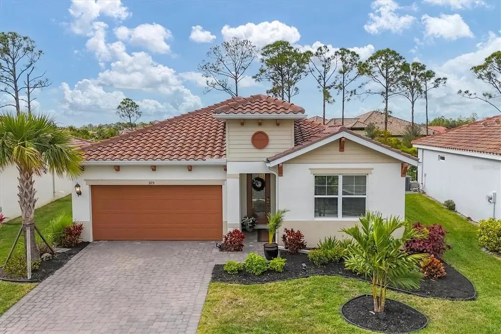 SUPER-WELL MAINTAINED!!! FURNISHED!!! LARGE OPEN floor plan!!! OVERSIZE GARAGE for ultimate storage space!!! EXTENDED LANAI with stamped concrete design!!! Highly desired WESTERN LANAI EXPOSURE!!! SPACIOUS KITCHEN!!! NO CDD FEES!!! X-FLOOD ZONE per property appraiser site!!! CITY WATER and SEWER!!! ***Be sure to check out the 3D video walkthrough tour by clicking on the 'Tour 1' button at the top left of this MLS listing*** This VERY POPULAR, maintenance-free, gated community is hard to buy into because the residents don't want to leave!!! From the moment you drive up to the manicured security gate, enter onto the private streets lined with sidewalks, palm trees, street lights and landscaping, you will feel the warmth of this wonderful community! As you walk up your PAVER DRIVEWAY AND SIDEWALK and step into your new HIGH QUALITY-CRAFTED home, you are set to be impressed! This LIKE NEW and upgraded OPEN FLOOR PLAN is in IMPECCABLE condition WITH NO WORK to do! The QUALITY CRAFTSMANSHIP is at your fingertips! High-quality-construction and attention-to-detail is noticeable!!! TILE ROOF!!! 2021 Water Heater!!! 2021 Washer and Dryer!!! 2021 HVAC!!! 2021 STAINLESS KITCHEN appliances!!! PLANK LVT FLOORING!!! UPGRADED fans and lighting throughout! Security alarm! SELF-MONITORING doorbell! Upgraded UV LIGHT PROTECTION in hvac!!! LAUNDRY ROOM pre-plumbed for future laundry tub!!! LOW HOA fees!!! This free-flowing floor plan will have you impressed the moment you walk through the BRASS CAMING FRONT DOOR! TALL CEILINGS, 8' sliders and large windows are there to greet you! Your new CHEF'S DREAM KITCHEN offers GLAZED WOOD CABINET DOORS with 42" uppers, glass tile backsplash and STAINLESS APPLIANCES! The primary bedroom suite teams up with an ELEGANT SPA-LIKE BATHROOM, offering tremendous vanity space, as well as, immense shower space. The primary shower is accentuated with a FRAMELESS GLASS shower enclosure! Bedrooms 2 and 3 are separated from the living space; your guests will enjoy this privacy when the family comes to visit. These two bedrooms share their own luxury bathroom with custom cabinetry and dueling vanities. With our incredible Florida weather, you will want to spend as much time on your OVERSIZE SCREENED LANAI and its STAMPED CONCRETE FLOOR DESIGN, relaxing and enjoying the solitude, sights and sounds of your new FLORIDA LIFESTYLE. If hanging inside is not your thing, the ABUNDANCE AMOUNT OF NATURAL LIGHT throughout this home with its LARGE WINDOWS will keep your spirits lifted and your heart full! When its pool time, take a short walk and encounter a resort-style/lap pool, pickleball courts, tennis courts, bocce ball, fitness center, and a beautiful clubhouse. With HISTORIC ISLAND of VENICE and Venice Beach just a short drive, easy access to I-75, and a multitude of amenities within a stones-throw, this location is matchless! It's time for you to join the Woodlands community!