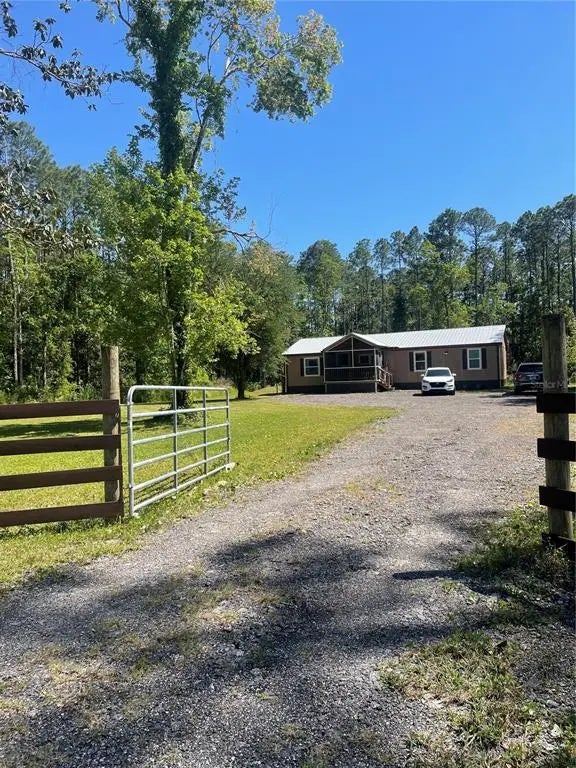 A beautiful place in the country! If you have dreamed of living in the country, this truly country living at its best. Just over an acre and surrounded on three side with woods, this property has fruit trees galore; cherry, tangerine, orange, lime and even blueberry bushes! There are raised beds in place with vegetables growing! Two sheds to store your yard and garden tools. Inside the home there is a wood burning fireplace, updated kitchen with an island, cabinets and stone counter tops, the house has been beautifully renovated with new flooring and cabinets. All appliances, a/c, and water heater are only one year old! The bedrooms are split with the primary bedroom and bathroom on one end and two bedrooms with a bathroom on the opposite end. There is plenty of storage inside including a large walk in pantry and extra cabinets. You must come and look at this one, it will surprise you with how incredibly nice it is!