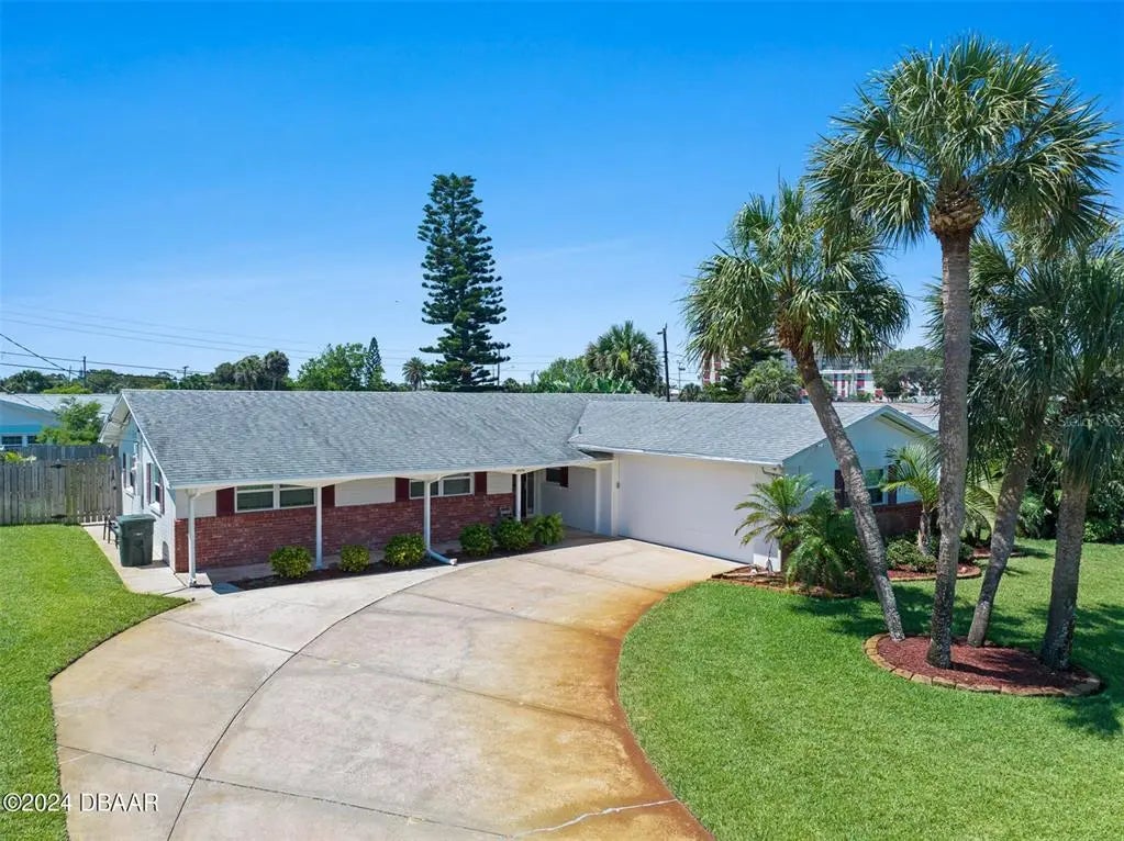 REDUCED to sell! Light and Bright BEACHSIDE ranch with lots of windows in this very well-maintained BLOCK home priced below appraisal! Nice, quiet neighborhood near high school. Low maintenance landscaped yard surrounds a comfortable 3 bed, 2 bath plus flex or 4th bedroom. Great for entertaining, empty-nesters, family, or seasonal fun! Two oversize Pella impact sliders open onto large screened patio nestled in private landscaped backyard. A third Pella impact slider opens to outdoor patios! Modern kitchen cabinets, teak vanity in the master bath and coastal white in the hall bath, all with quartz countertops. Attached 2-car garage with washer/dryer, workbench, and oversize utility sink. Lots of updates in 2022 & 2023. First time on market since 1974! Golf cart neighborhood close to Ormond Beach & Andy Romano Park! Convenient to nearby shopping and entertainment and a distance to the World's Most Famous Beach! Visit this great home and make an offer today!