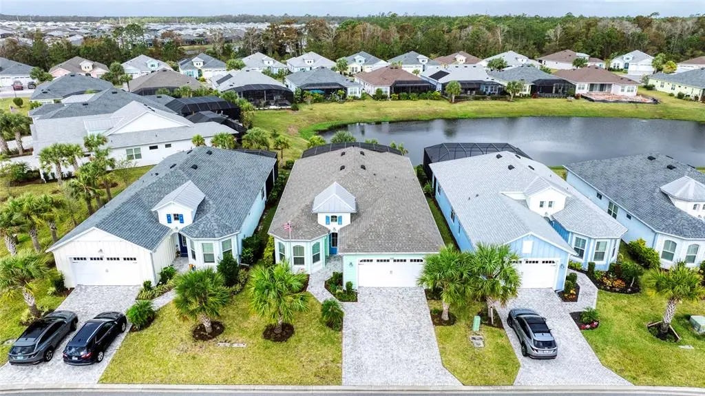 Welcome to your new oasis in the highly desirable Latitude at Daytona Beach, a 55+ community inspired by the laid-back Key West lifestyle! This luxurious 3-bedroom, 3-bath Breeze model is meticulously designed with high-end finishes and thoughtful upgrades. Step into the spacious Great Room with high ceilings, creating an open and inviting space for entertaining. The chef’s dream Kitchen is beautifully appointed with 42" white cabinetry, crown molding on cabinets, a fridge surround cabinet, soft-close drawers, stainless steel appliances, and a high-end double oven. A large center island with shiplap accents, quartz countertops, a hidden microwave, and an upgraded exhaust system over the stove complete the kitchen’s functionality and style. With crown molding and 8-foot doors throughout, this home offers elegance at every turn. Practical upgrades include a widened driveway, gutters, and a built-in hallway cabinet with granite countertop. The front bedroom features a built-in Murphy bed, while the Laundry Room includes a folding table and cabinetry for convenience. Your guests will enjoy a private en-suite setup with a pocket door leading to a bathroom featuring a glass-enclosed shower with floor-to-ceiling tile and a granite countertop. The primary suite is a serene retreat with a pond view, an accent wall, and two walk-in closets, one large enough to be a sewing room! The spa-like primary bath offers a glass shower enclosure, built-in tiled footrest, multi-head shower, and split vanities with pullouts. The oversized screened Lanai overlooking the pond is ideal for relaxation and entertaining, with a long beverage shelf and remote-controlled hurricane screens that double as sunshades. Additional highlights include oversized wood plank tile, a high entry foyer with shiplap accents, recessed lights and designer fans throughout. Discover the epitome of luxury living at Latitude Margaritaville, a masterfully designed oasis where every detail of your dream lifestyle awaits. Nestled within a gated community, Latitude at Daytona Beach offers an unparalleled selection of amenities, crafted to meet your every desire and whim. Begin your day with an energizing workout in the state-of-the-art fitness center, then unwind at one of the three heated pools. From the tropical lagoon pool or the sports pool to the lap-friendly indoor pool. You can always enjoy the Private Oceanfront Beach Club with pre-set loungers and umbrellas along with yet another pool, every moment promises relaxation. Entertainment is at your fingertips with live music by the pool, at the Bar & Chill Restaurant, and concerts at the BandShell, plus spontaneous pop-up bands around the community. Sports enthusiasts will be thrilled by the options, including tennis, pickleball, bocce ball, pool volleyball and even a golf cart-friendly dog park for your furry friends. The luxuries extend indoors, where you can explore your artistic side at the pottery or woodworking workshops or enjoy live performances at the theater. With lawn care and landscaping all handled for you, there’s ample time to embrace everything Latitude has to offer. Conveniently close to shopping, pharmacies, and healthcare, Latitude combines ease and elegance in one place. So, grab your shades and flip-flops and step into your personal paradise—Latitude at Daytona Beach. All information recorded in the MLS intended to be accurate but cannot be guaranteed.