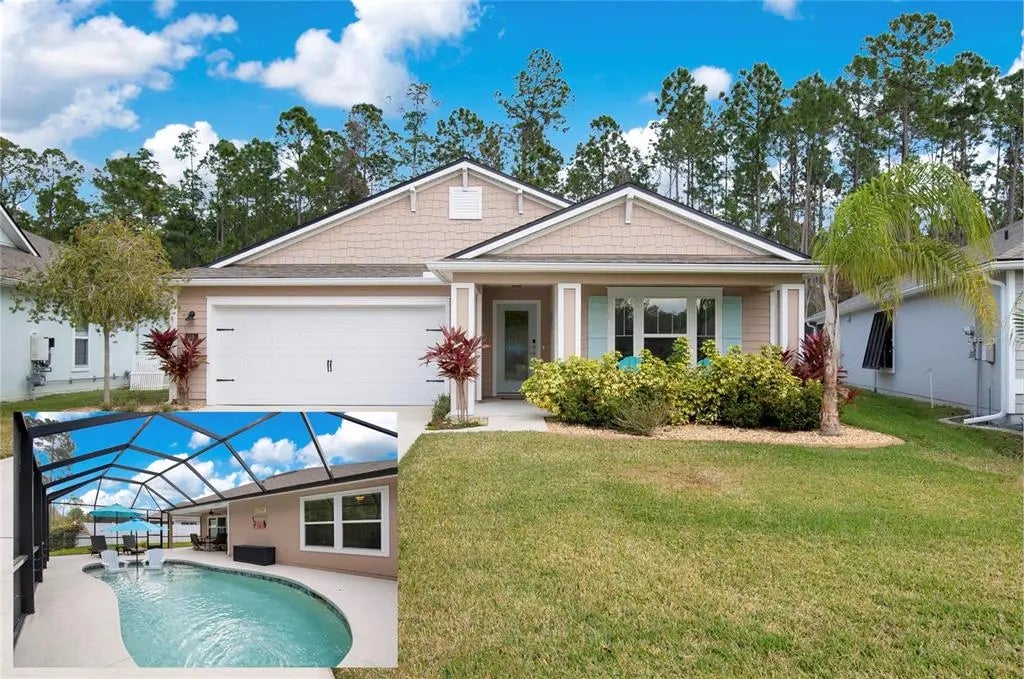 This community offers resort-style amenities, and a vibrant social atmosphere tailored to active adults while still providing some leeway for adults younger than 55. Residents can enjoy features like clubhouses, pickleball, fitness centers, a stunning pool, a golf course, and organized activities. This modern residence features a private saltwater pool only installed 3 years ago. Sit and lounge on the pool’s beach shelf and sip on a cold beverage while soaking in mother nature with a preserve behind you and privacy fences on both sides. With all the upgrades and design this home has to offer, it is perfect for those who appreciate quality and comfort and it is MOVE IN READY! Two bedrooms plus a versatile flex room that can function as a third bedroom/ office. The kitchen is perfect for any chef with upgraded Whirlpool stainless steel appliances. This spacious kitchen has a walk-in pantry and a double-door range with a gas cooktop. Ceramic tile flooring throughout makes for a seamless flow from the minute you walk in. Other features include a tankless water heater, water softener, termite bond, security system and so much more. This home has the perfect blend of privacy, making it a perfect choice for your next home. Flagler Beach is nearby and offers a variety of restaurants, coffee shops, shopping, boutiques and so much more. YOU ARE GOING TO LOVE IT HERE! Schedule your showing today.