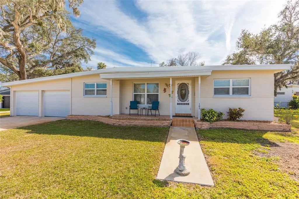 Sit on your front porch and enjoy the lovely river views! Move right in! This charming concrete block split ranch 3 bedroom/2bath home located on a quiet cul-de-sac is ready for a new owner to come on in and make it their own! Beautiful natural light in every room, freshly painted with stunning hardwood floors throughout the living room & bedrooms that each are adorned with glimmering stained glass inset doors. Renovated master bath off master bedroom with nice size walk-in closet. 2 additional bedrooms both with ample closet space and shared guest bath. Large family room/dining room combo excellent for entertaining with natural wood burning fireplace. Bright & Airy kitchen with large pantry. Extra deep garage with laundry and plenty of storage space, 2 single drive thru doors and a large double door leading to the backyard. Large partially fenced in lot with additional side lot that could be used for garden or added outdoor gathering space. Multiple upgrades have been done to the home in recent years including a new membrane roof, aqua pex plumbing, whole house water filtration system, & water heater. Well supplied sprinkler system with new pump installed in April 2025. No HOAs, no headaches! This home comes with ZERO association fees, no nosy board meetings, and total freedom to make it your own!