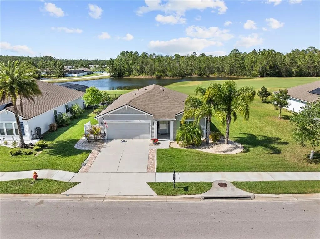 SELLER WILL PAY $2500.00 TOWARDS BUYERS CLOSING COSTS ON THIS HOME! It was a model home that is better than the new construction with so many extras. There is 85' front frontage and the lot is almost double most of the lots in the neighborhood and has a beautiful view of a pond and golf course. The screened lanai was expanded for plenty of room for relaxing and entertaining. The kitchen is perfect for any chef with upgraded stainless steel appliances. plus a walk-in pantry and a gas stove. The bathrooms are updated, new LVP floors, 42" cabinets in the kitchen, custom planation shutters, whole house water filtration, tankless water heater and so much more. The home is filled with natural light and is move in ready. This community offers resort-style amenities and a vibrant social atmosphere. This is a golf course community and golf carts are allowed on the streets. Residents can enjoy features like clubhouses, pickleball, fitness centers, a stunning pool, a golf course, fishing pond, fire pit, outdoor kitchen and grills, bocce courts and organized activities. You are walking distance to the community center. All this plus only 12 minutes to Flagler Beach and the Atlantic Ocean. This is really living the Florida dream. Call today for a private showing.