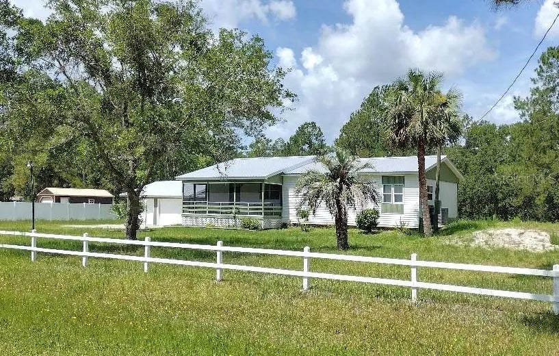 Embrace peaceful country living with this charming 3 bedroom, 2 bath manufactured home situated on a beautiful 165x300' cleared county lot. Offering both comfort and functionality, this well-kept home features a metal roof and a blend of open living spaces and cozy corners for your lifestyle needs. Step inside to find a large living room perfect for gatherings and relaxation. The functional kitchen includes a center island, ample cabinetry, and counter space ideal for home cooking and entertaining. Just off the main living area, enjoy a light-filled Florida room—a great bonus space for an office, hobby room, or sitting area. The spacious master bedroom boasts a private master bath with shower. Two additional bedrooms with space for guests or a home office. A well-equipped laundry room with ample storage space, keeps everything organized and out of sight. Enjoy mornings on the welcoming front porch, and take advantage of the detached 2-car garage for vehicles, tools, or recreational gear. With plenty of room for a garden, animals, or your favorite outdoor hobbies, this property offers the freedom of country life with room to grow—all while being within easy reach of shopping, dining, and recreation. Don’t miss your chance to own this slice of rural paradise!