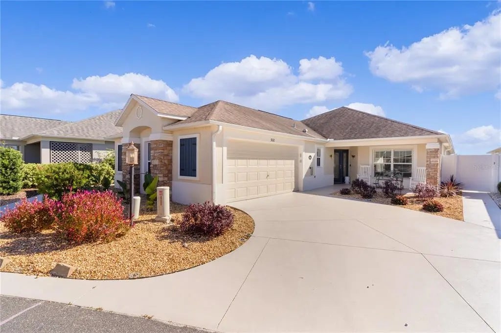 IMAGINE…waking up to TOTAL SERENITY & BEAUTY each and every day! COMPLETE PRIVACY and NO HOMES in sight…JUST WILDLIFE! Less than two miles to Sumter Landing, offering easy access to restaurants, shopping, and nightly entertainment. "This exquisite WATERFRONT Wyndham Courtyard Villa has been meticulously renovated and expanded to offer a luxurious 3-bedroom, 2-bathroom retreat. Nestled in the serene Village of Hacienda at Mission Hills, this residence spans an impressive 2,800 square feet, promising a truly unique living experience. The heart of the home, the kitchen, has been completely transformed, featuring an expansive island with a sink, new cabinetry and Silestone countertops, New GAS Stove, appliance closet with electric, new large PANTRY, CROWN MOULDING, custom closets, new refrigerator, two electric shades and four pull down shades for privacy. Under-cabinet lighting, and a glass cabinet with wine refrigerator elevate your culinary experience. AND NO POPCORN CEILINGS. Entertain in grand style within the 24' x 24' new addition, which boasts exquisite built-in cabinetry, an electric fireplace, and a convenient grill & beverage fridge for your guests, all while enjoying sweeping waterfront views. Retreat to your lavish master suite, graced with panoramic views of the open water and an exquisitely 13 X 10.5 remodeled master closet/dressing room. Your guests will find comfort in the updated guest bathroom, adorned with designer lighting, new cabinetry, sinks, faucets, and Silestone counters. Your two-car garage is a haven of convenience, insulated and air-conditioned with a freshly painted epoxy floor, equipped with a new garage door motor and key pad, along with a high-end motorized retractable screen door. The HVAC system was replaced in 2020, and the entire house has been recently painted, both inside and out, ensuring the utmost in quality and care. Partially furnished. This extraordinary property offers a truly exceptional living experience, where attention to detail and luxurious amenities come together to create an exquisite home. Don't miss the opportunity to make this your own and embrace the finest in Florida living. Close to Haciendas of Mission Hills Neighborhood Recreation Area and Pool and Lake Sumter Landing, Palmer Legends Country Club and Golf Course and Live Oaks Park, Laurel Manor Regional Recreation Center, Shopping and Restaurants. PLEASE WATCH OUR VIDEO OF THIS EXCLUSIVE WATERFRONT PROPERTY.