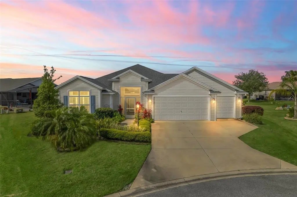 One or more photo(s) has been virtually staged. Welcome to your dream home in the highly desired Village of Hillsborough! This stunning Juniper designer home with three bedrooms and two baths is situated on a quiet cul-de-sac, offering peace and privacy, with room for a pool. As you enter through the screened entryway, you'll be greeted by a beautiful stained glass front door with side panels. Step inside to discover the luxurious new (2024) luxury vinyl plank flooring that flows throughout the main living areas and bedrooms. The open floor plan allows for easy entertaining and comfortable living. The spacious kitchen boasts upgraded appliances and convenient pull-out cabinets, making meal prep a breeze. With a large island, breakfast nook, and dining room, there's plenty of room for hosting family and friends. Retreat to your spacious primary suite featuring an ensuite complete with a Roman shower, dual vanities with ample storage space, and a large custom closet. The second bedroom has been expanded forward for extra space while the third bedroom offers a generous closet. Need more storage? No problem! This home also features an expanded two-car plus golf cart garage, complete with a generator hook-up and pull-down attic stairs, with additional cabinets in the laundry area complete with a sink. But that's not all, this home also includes a whole-home water purification system! Step outside onto your glass-enclosed lanai featuring river rock flooring and enjoy year-round comfort thanks to its climate-controlled split design. And if you're looking for outdoor entertainment space- look no further! There’s plenty of room for an oversized pool. See attachments for an idea of a pool design and imagine relaxing poolside on those hot summer days. Located minutes to Brownwood Paddock Square where you will discover live nightly entertainment, restaurants, and shopping, close to medical facilities, golf course, as well as recreation centers. Don't miss out on this incredible opportunity to call this Juniper designer home yours! Schedule your showing today before it's gone.