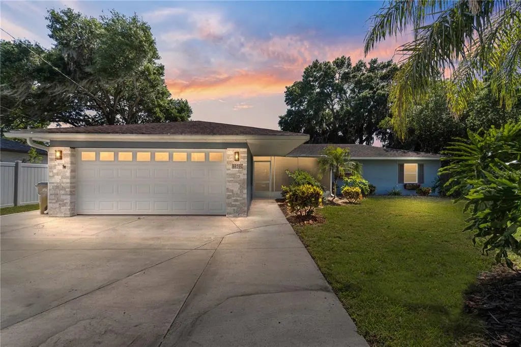 ANOTHER PRICE DROP!! Welcome to your LAKEFRONT Oasis dream home! This beautiful DOUBLE PRIMARY bedroom home just so happens to lie on the most attractive and desired street in Lake County! No water bills, NO FLOOD ZONE, newer AC units, low home owners insurance premium, and NO HOA make this gem extremely economical. Come enjoy breath taking sunsets while boating to your favorite restaurants on beautiful Lake Dora or any other connection body of water on the infamous Harris Chain of Lakes. 10's of thousands of dollars were spent renovating this beauty in 2019. This waterfront access is NOT across the street, so you actually do GET the gorgeous views! Lake Dora is right in your back yard! How long have you been searching for the right waterfront property and keep saying to yourself "but I don't needs stairs or 4,000 sq ft?". Well you can't say that here! 2,200 well used sq ft makes this very enticing. Do you need to keep a closer eye on elderly mom or dad? The double master split floor plan also makes this opportunity ideal! This sturdy all block extremely energy efficient home is conveniently located just 10 minutes from downtown Mount Dora and 5 minutes from downtown Tavares! And for the important part...this is waterfront living for under $1 Million!! The home features a dock/boathouse with boat lift plus floating docks to park your smaller motor water toys and a concrete sea wall. Do not pay for your irrigation water as it's pumped straight from Lake Dora. Kayak stands will stay with the home. There's black rod iron fencing to keep our best furry friends all contained. Well & septic pumps were replaced within the last 4 years. The AC units are both 5 years old. There is a main house unit and the Florida room has it's own split unit. The roof and lake dock are just 10 years old. The garage was constructed 8 years ago. There are 3 outdoor screened in patios, with one of them coming privately directly off the master bedroom and one in the front. The water softer system pumps out the best water in town! There is a current termite bond in place just in case. There are automatic shades in the living room and all new lighting and ceiling fans. The kitchen features granite countertops, stainless steel appliances, hooded stove, pull out cabinets, and a breakfast bar. Sherwin Williams paint inside and outside in 2020. The front feature new accent stone inviting you home every single day. Come check this golden opportunity out before it's gone!