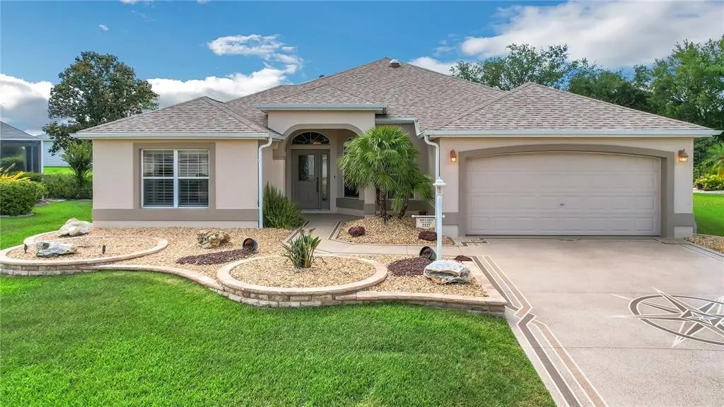 BOND IS PAID on this Beautiful Gardenia Model Home for sale in the desirable Village of Santo Domingo with privacy in the back! This 2248 square foot, partially furnished home offers an open and split floor plan, high ceilings, accessibility features, solar tubes and ceiling fans. The flooring in this 3 bedroom 2 bath (3rd bedroom has no closet) consists of ceramic tile on the diagonal in all of the main areas with laminate in the guest rooms and luxury vinyl plank in the master and the enclosed lanai. This wonderfully spacious kitchen has tons of cabinetry with double pull outs, beautiful quartz countertops complimenting the white appliances, a breakfast nook and a long peninsula suited for bar stools. The large master suite (18x13.6) has 2 walk-in His & Hers Closets (7.6x4.6 / 4.3x6.3) double sinks with quartz countertops and a walk-in shower with bench seating. The 2 guest bedrooms share an updated bathroom with quartz countertops and a gorgeous glass enclosed walk-in shower. The Florida room (27x7.7) has heat and air and is accessible from the living areas as well as the master bedroom. Beyond that room is a huge outdoor patio area (38x15) protected by a bird cage. The 2 car garage has pull down attic stairs, an extra refrigerator, and a utility sink. There is a designer driveway & walkway and the hard scape is stunning. The Architectural Roof was replaced in 2019, the water heater in 2013 and the HVAC in 2013. Golf Cart is available separately. This home is something special with its upgrades and its updates. Please don’t let this one get away. Call today for a private showing.