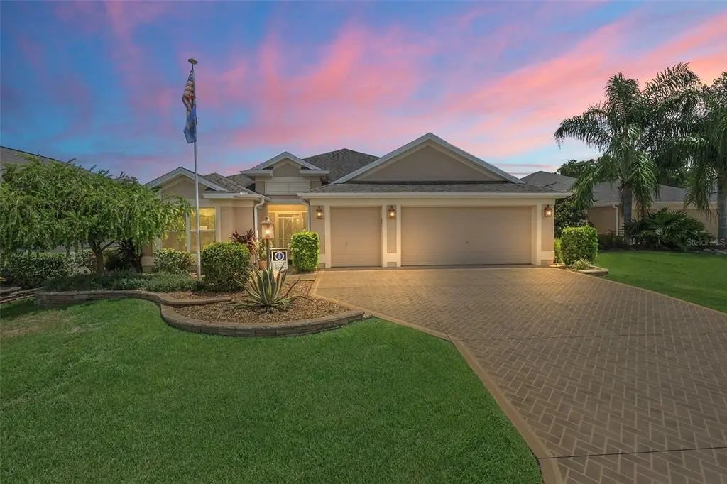 Nestled within a quiet CUL-DE-SAC in the highly coveted village of LAKE DEATON, this SPECTACULAR 3/2 BLOCK and STUCCO Iris model with IMMENSE, GLASS ENCLOSED, CLIMATE-CONTROLLED LANAI and OVERSIZED TWO CAR + GOLF CAR garage is a MUST SEE!!! Immediately enjoy the financial benefit of a BOND-FREE HOME (an $18,000 value) PAID OFF early by the current owner!!! Enhanced hardscaping, herringbone brick-patterned drive and walkway, screened entry, and a leaded-glass door with beautiful STAINED-GLASS transom window welcome you in to a well-lit and generous foyer boasting HIGH CEILING, TILED floors, and a convenient ENTRY CLOSET. The EXPANSIVE open concept living and dining area features gorgeous engineered HARDWOOD flooring and HIGH CEILINGS creating a SPACIOUS and voluminous main living area. From the living room, sliding glass doors, adorned with a beautiful cornice, invite you in to an IMMENSE, 28’ x 16’, GLASS ENCLOSED, CLIMATE-CONTROLLED LANAI. This AMAZING, one-of-a-kind room is surrounded by mature landscaping, creating abundant PRIVACY! This versatile space boasts beautiful TILE floors and solar shades. Step out from the lanai to an outdoor patio for grilling or enjoying the Florida sunshine! Additional features include NEW exterior paint (2022), arched doorways, and HIGH baseboards. The STUNNING kitchen boasts rich WOOD cabinetry, GRANITE countertops, TILED backsplash, and STAINLESS appliances. A built-in PANTRY with roll-outs and a convenient eat-in breakfast bar complete this culinary haven. Adjacent to the kitchen, the dinette area, with its VAULTED ceiling and ample windows, invites natural light and offers easy access to the lanai through a sliding glass door. The luxurious primary bedroom features a TRAY ceiling, engineered HARDWOOD flooring, and an abundance of windows. Its en-suite bathroom is a retreat in itself, with TILE flooring, a large CUSTOMIZED WALK-IN closet, WOOD cabinetry, GRANITE countertops, DOUBLE sinks, TILED WALK-IN shower, built-in LINEN closet, and separate water closet. Two additional bedrooms and a second bathroom are conveniently located behind a POCKET DOOR near the front of the home, ensuring plenty of PRIVACY for guests or a quiet home office. Bedroom two features a TRAY ceiling and large double windows, while the third bedroom boasts a VAULTED ceiling. Both rooms have built-in closets for ample storage. The second bathroom is well-appointed with TILE floors, WOOD cabinetry, GRANITE countertop, TILED tub and shower combination, and a hallway linen closet. A generous INTERIOR laundry room features TILE floors, a built-in utility sink with GRANITE top, shelving, and WOOD cabinetry for extra storage needs. The OVERSIZED 27’ x 22’ TWO-CAR + GOLF CAR GARAGE offers epoxied flooring and pull-down stairs with attic access. DON’T MISS THE OPPORTUNITY TO MAKE THIS INCREDIBLE HOME YOUR OWN!!! The Village of Lake Deaton is conveniently located near Brownwood Paddock Square, Evans Prairie Golf and Country Club, Bonifay Golf and Country Club, Belle Glade Golf and Country Club, Lake Deaton Pool and Recreation Center, Lake Okahumpka Park, Lake Deaton Plaza, Freedom Plaza, Colony Plaza, and an abundance of shopping, restaurants, banks, medical, and more! PLEASE WATCH OUR WALKTHROUGH VIDEO OF THIS MAGNIFICENT HOME and call today to schedule your Private Showing or Virtual Tour!