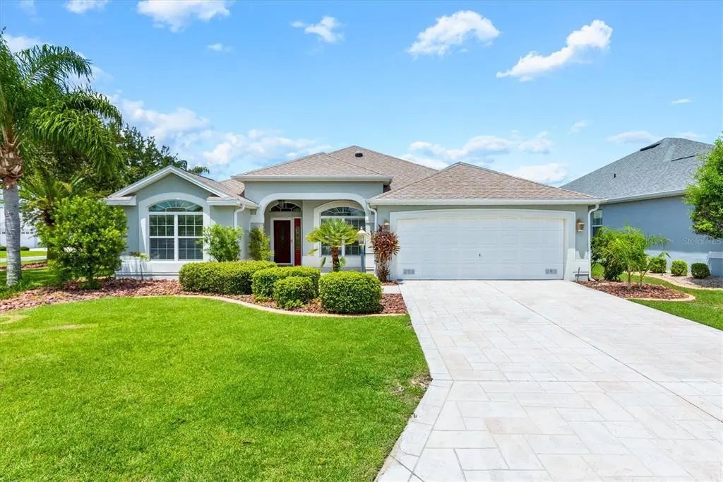 NEAR LAKE SUMTER LANDING in THE VILLAGE OF MALLORY SQUARE. Corner Lot with ROOM FOR A POOL OR EXPANSION! This lovely Designer Gardenia model (without pillar) is located on a CORNER LOT in The Village of Mallory Square in The Villages, Florida. Recently updated with a NEW ROOF in July 2024, this home offers plenty of room for a pool or expansion. As you enter, you'll notice the unique design of this Gardenia, which lacks the typical pillar in the dining room, creating a more open feel. The solar tube brightens the home and features knock-down ceilings, beautiful engineered hardwood floors, and high baseboards. The spacious kitchen is a chef's dream, boasting granite countertops, a gas range, and plenty of Glazed Pecan cabinetry. The primary suite offers a peaceful retreat with access to the enclosed lanai, a vaulted ceiling, and two walk-in closets. The en-suite bathroom includes a zero-entry Roman shower, a separate water closet, split dual vanities with granite countertops, and a linen closet. Bedrooms two and three are situated on the opposite side of the home, with a pocket door providing privacy for guests. Additional features include an inside laundry room with a utility sink and supply cabinets. This home is move-in ready and waiting for you to call it your own. Enjoy the lifestyle in The Villages, FL, where golfing, shopping, dining, and entertainment options abound. Take advantage of the convenience of golf cart accessibility to club meetings, medical services, and various entertainment choices. This home is ready to become the next exciting chapter in YOUR story. A low bond balance of 7,366.24 with annual payment included in the tax bill 814.21.