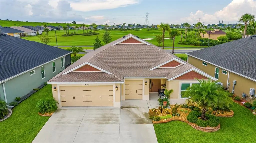 BETTER THAN NEW with tons of upgrades! Great view of the Micky Lee Pitch N Putt! No homes behind! So, if you're looking for elegance with a VIEW in a great location, then be sure to consider this impressive Oriole Designer 3/3 in the Village of Lake Denham! This home offers numerous upgrades such as Professional Landscaping, Crown Molding, Decorative Cornices over the Sliding Glass Doors, Quartz Countertops, LVP flooring, and an epoxy coated garage floor. When you open the door your eye is immediately drawn to the stunning interior and a panoramic view of the Mickey Lee Pitch N Putt Golf Course! The three bedroom Oriole floorplan provides a perfect triple split bedroom plan with three full baths (two with walk-in showers)! The Chefs kitchen offers plenty of counterspace, pull-outs in the lower cabinetry, stainless appliances, and a large single-bowl undermount sink. The sumptuous Primary Suite includes a spacious bedroom with plenty of room for a king bed, large walk-in closet with a professionally installed closet system, dual sinks, and a Roman walk-in shower. The privacy of the spacious front bedroom is further enhanced by a pocket door which is perfect for visiting guests or in-law suite. Huge 27' screened lanai overlooks the rear yard with no homes behind and a wonderful view or the Golf Course. Great location with the Franklin Rec Center just across the street offering a family pool, Pickleball, Archery, outdoor gym equipment, putting green, bocce, and so much more. Just minutes away is Sawgrass Grove, the Ezell Regional Rec Center and just a short trip over the bridge via Bexley Trail to Eastport! Hurry...homes with a view at this very attractive price point are few and far between in The Villages.