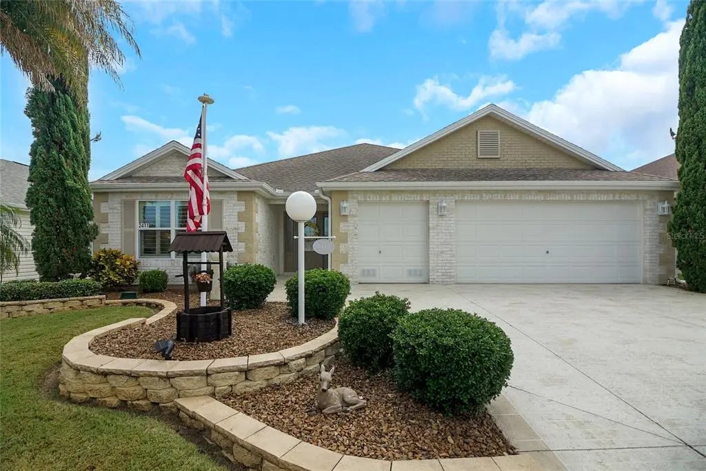 Clean 4 Point Inspection Available. Seller will provide credit for roof or new roof prior to closing. Get Ready to make this home yours now! Welcome to this BOND PAID, Customized Lilac Designer, golf cart garage home in the highly sought out Village of St. James! This one of a kind home boasts tasteful modifications and upgrades that you won’t see in other homes. The exterior has been beautified through landscaping, hardscaping, painted driveway, and front exterior stucco. Upon entering the home you will notice the gorgeous stone wall with electric fireplace, as well as the large lanai with complete privacy in the back. The primary bedroom is large in size with tray ceilings while the en-suite has a large walk-in closet (8’ x 9’5”), Roman shower, and oversized garden tub. This 3 bedroom 2 bath, 2 car plus golf cart garage has high ceilings, lots of natural light, and an open floor plan as well as a split floor plan. The guest bedrooms are large in size and have built-in shelving in the closets. One guest bedroom has a Murphy bed. The other guest bedroom has a tray ceiling and plantation shutters. There is a pocket door from the foyer separating the two guest bedrooms and guest bath providing your guests the privacy they need. The kitchen features bisque cabinets, osmosis water system, pull-outs, beveled countertops with matching backsplash, can lights, upper & lower lights, dinette, and a closet pantry. Both kitchen and living room have sliding glass doors that welcome you to your private lanai with plenty of room for entertaining family and friends. An added bonus is the oversized laundry room with space for extra storage or an office area. For peace of mind, the sellers had the HVAC System serviced 2X per year. The 2 car + golf cart garage has a mini-split air conditioning unit, a water softener system, pull down attic, flooring in attic and painted concrete floor. Centrally located between Lake Sumter and Brownwood. Also, near grocery stores, restaurants, medical facilities, and shopping. Start Living The Dream Today! Call for your private showing!