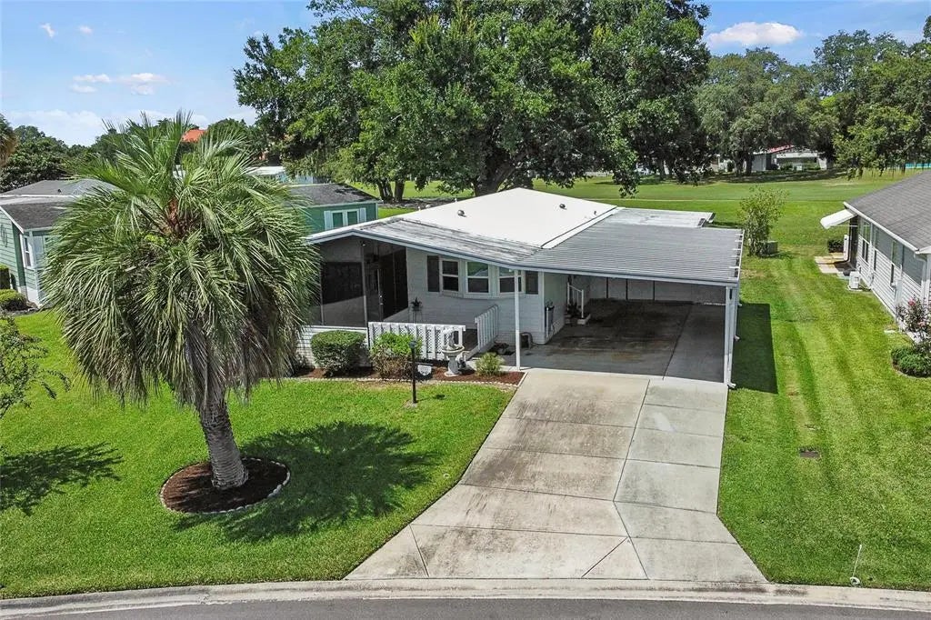 Brand New Roof January 2025! Welcome to 1777 Lauren Lane. Located in the Heart of Country Club Hills in The Villages, This Manufactured Home is Priced to Sell Fast. Tastefully Renovated, Prepare to be Impressed when you enter this Spacious 2 Bedroom, 2 Bath, GOLF COURSE STUNNER. Excellent for Entertaining, this Home is in a Prime Location and has it all. Large Living Room & Dining Room get the Morning Light & have Laminate Flooring, Vaulted Ceilings, Chair Rail Moldings, Central Heat & Central Air Conditioning. Enter to or From the Homes 2 Lanai rooms: One off of the Living Room in the Front with Sliders & One off the Back in the Oversized Primary Bedroom Suite. Wave to your Friends Playing Golf from the Outdoor Deck that has Picturesque Views of the Golf Course. Primary Bedroom is Complete with Full Bath, Granite Countertops, Double Sinks & Large Walk-in Closet. The Nicely Sized 2nd Bedroom has Multiple Uses and a Large Walk-In Closet. A Full Tub Bath with Linen Closet Sits Adjacent Just Outside in the Wide Hallway. Watch the Sunrise from the Front Living Room or Lanai or from the Granite Kitchen that has Custom Cabinets, Stainless Steel Appliances, Double Sink with Garbage Disposal, Beautiful tiled backsplash & a Nice Sized Pantry Closet for Storage. Newer Windows Throughout, Updated Lighting, Ceiling Fans & a Water Filtration System are Firmly in Place. Plenty of Wall Space for your Favorite Artwork, This Home is Complete with an Attached Finished Work Room with Washer/Dryer, Lots of Storage, Hot Water Heater, Updated Electric, Attractive Landscaping with Lighting & In-Ground Sprinklers. Watch the Beautiful Florida Sunrise from your Amazing Slice of Paradise. Oversized Carport Fits 2 Cars and 2 Golf Carts and the Driveway Fits 2-4 Cars. Very Close in Proximity to the Wonderful Orange Blossom Community Pool, Spanish Springs Town Square, Hospital, Golf, Shopping, Restaurants & Amenities. AC: 2020, Water Heater: 2009.