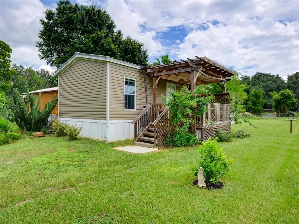 FARMSTEAD-HOMESTEADERS-SMALL FARM---4.6 ACRES, fenced and cross fenced and ready for horses or farm animals! Property has improved pasture grasses, vegetable garden area and large trees scattered throughout for shade. Multiple out buildings consisting of horse barn with 2 stalls and feed storage area, large dog kennel, chicken pen, concrete block building for a workshop, equipment storage and open carport. Greenhouse, numerous edible plants and fruit trees and several hundred newly planted Xmas trees. Well maintained 2 bedroom 2 bath mobile home with extensive decks and also 2 well-built wood frame buildings nicely finished interior for possible additional living area, office, hobby rooms etc. Home, decks and 2 wood frame buildings are connected by a concrete patio area with firepit for social or relaxation activities. Mature landscaping with walking paths for leisurely strolls in the shade while admiring natures treasures!