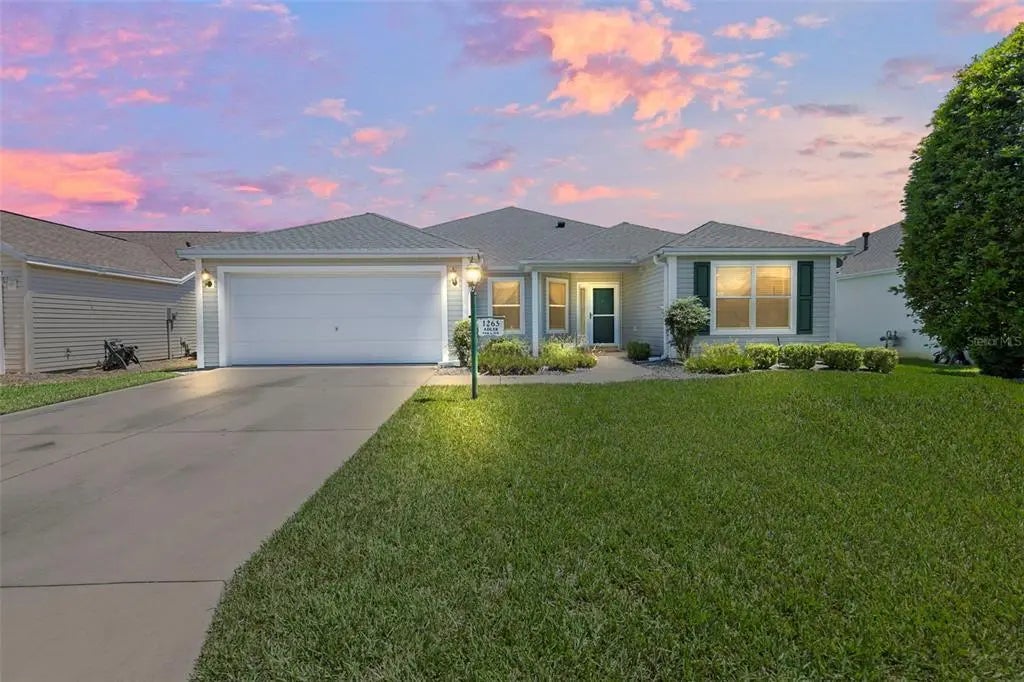 Welcome to your dream home in the centrally located Village of Glenbrook. This 3/2 Hibiscus (Camellia) model boasts an inviting exterior highlighted by a front porch, enhanced landscaping, and a full 2-car garage. BOND PAID. ROOF 2020. Upon entering, you are welcomed into a spacious living room featuring vaulted ceilings, lending an airy and open feel. The main living area showcases beautiful laminate flooring, combining durability with modern style. The open concept layout fluidly connects the living and dining areas to the kitchen, making it an excellent setting for entertaining family and friends. The bright and spacious kitchen is outfitted with white appliances, GAS range, wooden cabinetry, and a breakfast bar that encourages casual dining and conversation. Conveniently accessible from the living room, the charming screened-in lanai with painted floor and two upgraded ceiling fans allows for enjoyable indoor-outdoor living—a perfect spot to unwind or host gatherings. As you explore further, you’ll discover the luxurious primary suite, which boasts a spacious bedroom with two walk-in closets and en suite bathroom with double sinks and a walk-in shower for ultimate convenience and privacy. Two additional bedrooms offer ample space for family, guests, or a home office, while the second bathroom, featuring stylish and durable tile flooring, ensures comfort. The full two-car garage with attic statirs provides plenty of space for all of your storage needs. Don't miss the chance to make this extraordinary property your own! Experience the ideal blend of comfort, style, and functionality in a home that truly has it all. Located in the highly convenient Village of Glenbrook, this home is just moments away from Spanish Springs Square and Lake Sumter Landing. Enjoy easy access to the Saddlebrook Recreation Complex, featuring two executive golf courses, an adult swimming pool, four softball diamonds, and a Polo Field. Explore additional amenities such as the Hawkes Bay Executive Golf Course, Glenview Champions Golf and Country Club, the Savannah Center, multiple swimming pools, pickleball courts, and nearby shopping, dining, banks, and medical facilities along Route 466.Watch our walkthrough video of this beautiful home in an amazing location, and call today to schedule your private showing or virtual tour!