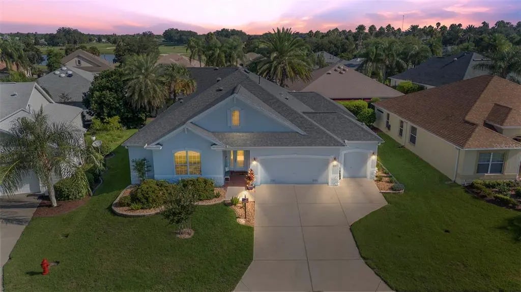 BOND PAID! Boasting an INCREDIBLE LOCATION in the village of Sabal Chase – just 9 blocks to Lake Sumter Landing via Canal Street – this 3-bedroom 2.5-bathroom BRIDGEPORT model with an added 160-square-foot BONUS ROOM has undergone a COMPLETE RENOVATION, including fresh exterior paint, new landscaping, and a NEW ROOF installed in late 2020. As you step inside, you are greeted by a spacious foyer/gallery, complete with a 1/2-bathroom – perfect for guests – and an expansive living area with VOLUME CEILINGS, where added recessed lighting and solar tubes create a “light and bright” atmosphere throughout. ALL-NEW interior paint and high-end LUXURY VINYL PLANK (LVP) flooring – both neutral – are sure to compliment any decor; while upgraded 5 1/4” baseboards and PLANTATION SHUTTERS add an elegant touch. The chef’s kitchen – the largest of any designer model – showcases ALL-NEW cabinetry with soft-close doors and drawers (42” upper cabinets), QUARTZ countertops, white tile backsplash, stainless appliances (including a double wall-oven, built-in microwave, GAS COOKTOP, and range hood), added recessed and pendant lights, pop-up outlets and USB charging ports, a generous CENTER ISLAND ideal for meal prep and gatherings, and a CUSTOM PANTRY CLOSET with sliding barn door for ample storage. The adjacent dining room features large bay windows, allowing plenty of natural light during mealtimes, as well as French doors leading to the ENCLOSED LANAI with tile flooring and an updated ceiling fan, offering the perfect space to rest and relax in any weather. Also located just beyond the kitchen, a BONUS ROOM is equipped with two closets, offering a flexible space that can be used as a home office, den, hobby room, or even a 4th bedroom. Leading out to the garage, the laundry room comes with additional upper cabinets and high-efficiency washer and dryer. The garage itself has room for 2 cars and 2 golf carts, with a designated golf-cart stall – not to mention FULLY MOTORIZED “Majic Stairs” attic steps, leading up to a walkable storage space with a solar attic fan. Other practical upgrades include epoxy floors and added storage racks above the garage doors. Back inside, the split floor plan locates the primary bedroom in the back of the home. This generous room has ample room for a king-size bedroom set and more, while the en-suite bathroom features a tiled ROMAN (walk-in) SHOWER with a hanging towel warmer, dual-sink vanity, and a LARGE WALK-IN CLOSET with built-in shelving (not pictured). Bedrooms 2 and 3 also feature LVP flooring (no carpet!) and full-sized closets, while the shared Jack-and-Jill bathroom has a tiled tub/shower combo and comfort-height vanity. All appliances are included, and some furniture are available separately. The village of Sabal Chase is conveniently located just 1 mile south of the popular town square, Lake Sumter Landing, and less than 15 minutes to Brownwood Paddock Square. It's close to Bacall & Bogart Executive Golf Courses, Lake Miona Regional Rec Center, and numerous amenities including Sabal Chase and Virginia Trace adult pools, Canal Street family pool, several country clubs, pickleball courts, dog parks, and more. With easy access to County Roads 466 and 466A, you'll find an abundance of shopping, dining, banking, and medical facilities nearby. PLEASE WATCH OUR WALKTHROUGH VIDEO OF THIS BEAUTIFUL HOME and CALL TODAY to schedule your private showing or virtual tour!
