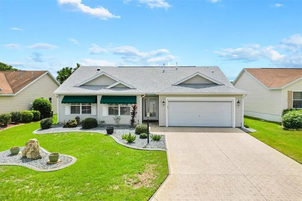 BOND PAID – LOCATION CLOSE TO LAKE SUMTER LANDING- Tour this 3-bedroom, 2-bath Designer Whispering Pine II floor plan located in the desirable VILLAGE OF MALLORY SQUARE, just a short golf cart ride from LAKE SUMTER LANDING. The BOND is PAID, and the home features continuous laminate flooring throughout, with tile in the kitchen and bathrooms. The spacious kitchen boasts CLASSIC LIGHT CABINETRY, CORIAN COUNTERTOPS, and a cozy breakfast nook. The SPLIT FLOOR PLAN provides privacy between the Primary and Guest SUITES, which can be closed off with a convenient pocket door. The PRIMARY SUITE includes a built-in closet system for optimal storage. The third bedroom, with French doors and a closet, is versatile and can be used as an office, sewing room, or additional living space. Step outside to the enclosed lanai with a mini-split system for comfort year-round and enjoy the patios on either side. WINDOW SHUTTERS allow for natural light and added privacy. The larger patio is perfect for relaxing, while the grilling patio, complete with privacy hedges, offers an excellent space for outdoor cooking. A MOTORIZED GARAGE SCREEN with a remote helps keep the garage cool and private. Additional features include the OMNI SHIELD HOME SAFETY Network (reactivation required for monitoring), and the home is offered furnished as seen in the photos. A golf cart is available for purchase separately. Roof 2023. HVAC 2024. Enjoy The Villages, FL, lifestyle with abundant amenities for you to attend golfing, shopping, dining, and enjoy many entertainment choices, club meetings, medical services, and more, all accessible by a golf cart.