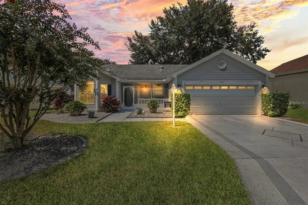 BOND PAID! Welcome to this stunning, FULLY FURNISHED home located in the beautiful village of De La Vista – just 6-8 minutes to BOTH Lake Sumter Landing and Spanish Springs Town Square! This popular Vera Cruz model features 3 spacious bedrooms, 2 bathrooms, an ENCLOSED LANAI, and a convenient 2-car garage complete with a spare fridge, retractable screen, and a NOVA whole-house filtration system. A convenient screened front porch welcomes you into the foyer, where upgraded TILE flooring flows seamlessly throughout the kitchen, laundry, living, and dining rooms. The kitchen has been completely renovated, showcasing BEAUTIFUL CABINETRY with full overlay doors and soft-close hardware, generous pot drawers, under-cabinet lighting, beautiful QUARTZ countertops, a generous breakfast bar and full coffee/drink bar with added cabinet storage, added LED recessed lighting and fans, and DARK STAINLESS appliances that make cooking a pleasure; Large bay windows with PLANTATION SHUTTERS add ample light to the adjacent breakfast nook. The expansive living room boasts VOLUME CEILINGS with a large ceiling fan and solar tube, and ample space – perfect for entertaining or relaxing with friends. Natural light floods the dining room through its large windows, creating an inviting atmosphere for mealtime gatherings, while the ENCLOSED LANAI with screened windows provides the perfect space for outdoor dining year-round. Retreat to the PRIVATE primary bedroom, where neutral luxury vinyl planking (LVP) flooring adds warmth and functionality. The en-suite bathroom offers a luxurious experience with a dual-sink wraparound vanity, tile flooring, and an upgraded solid surface WALK-IN shower with multiple shower heads and a frameless glass door (no tile grout to clean!); while a large walk-in closet satisfies all your storage needs. Bedrooms 2 and 3 – both located on the opposite side of this SPLIT FLOOR PLAN – also feature LVP flooring, the guest bathroom has a convenient tub/shower combo. The INSIDE LAUNDRY room features a new utility sink and upper cabinets for added storage. Finally, step outside to discover a quaint paved patio with PRIVACY HEDGES and concrete-curbed landscape beds, creating an idyllic retreat for relaxation and entertaining. This beautifully updated home seamlessly combines elegance and functionality with the added convenience of living just MINUTES to two popular town squares and myriad recreational amenities. Add to that a relatively new roof (2016) and HVAC system (2021), as well as a recently renewed Termite Bond (preventative treatment) with Massey, all ensuring peace of mind for years to come. The Village of De La Vista boasts a prime location just minutes to Lake Sumter Landing and Spanish Springs Town Square, Tierra Del Sol Country Club, De La Vista and Mira Mesa Executive Golf Courses, and both Highway 441/27 and County Road 466, where a variety of shopping, dining, banking, and medical facilities await. Be sure to check out our WALKTHROUGH VIDEO of this beautiful home, and CALL TODAY to arrange your private showing or virtual tour!