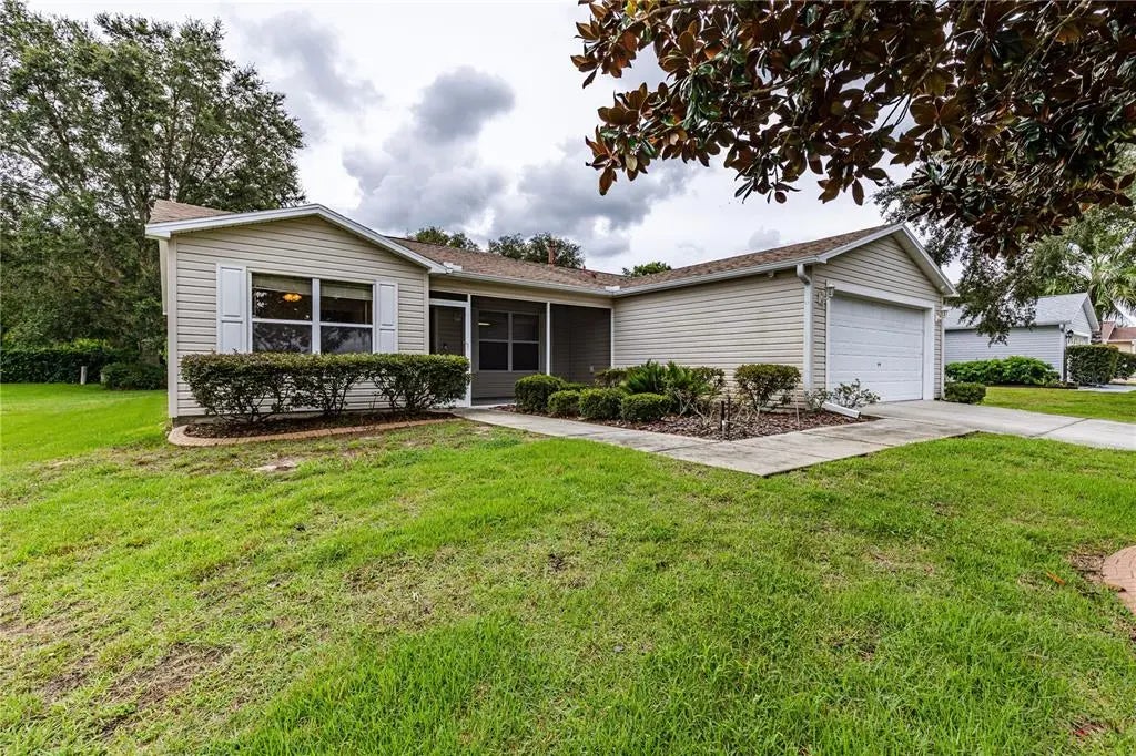 No Bond! Privacy! Gas Yamaha Golf Cart Included! Are you looking to remodel your dream home, or perhaps fix up a property to rent or flip? This 3-bedroom, 2-bathroom Amarillo Ranch home offers a blank canvas in the highly sought-after Village of CAROLINE. Located just 1.6 miles from LAKE SUMTER LANDING, this property is ideally situated for both convenience and tranquility. This home boasts privacy with NO NEIGHBORS BEHIND, allowing you to create your own personal oasis. As you enter, you'll appreciate the open floor plan, perfect for entertaining. The kitchen features ample cabinetry, stainless steel appliances, and a breakfast bar adding additional storage. A pocket door from the living area leads to two guest rooms and a guest bath. Both guest rooms come with large closets, and the rear guest room has a door leading to the lanai, enhancing privacy with the split floor plan. The guest bath includes a tub/shower combination and a linen closet. The large primary bedroom offers a spacious WALK-IN closet and an en-suite bath with a glass-enclosed shower and additional linen storage. The laundry room, conveniently located off the kitchen hallway, includes extra cabinets for storage. The two-car garage is generously sized and comes with additional storage cabinets and a workbench. Stepping outside to the SCREENED IN lanai for your morning coffee or winding down with a glass of wine with privacy. This is a property you do not want to miss! Located in one of the best spots in The Villages, this home is close to Sumter Landing, the Coconut Cove Recreation Center, a plethora of golf courses, and numerous other recreation centers, shopping, and dining options. Don’t miss out on this fantastic opportunity! *****PLEASE CLICK THE LINK TO WATCH OUR VIDEO TOUR OF THIS PROPERTY!