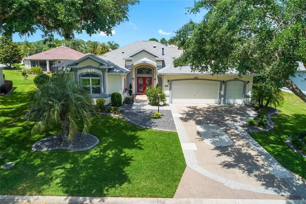 BOND PAID on this STUNNING, OPEN KITCHEN RIVERDALE PREMIER home w/SALT WATER POOL. It is situated on an oversized lot in the Villages of ROYAL OAK of SPRINGDALE. The beautiful double-front door with LED glass gives an idea of what's inside! The tiled entry w/columns & Crystal Chandelier leads to the beautiful HARDWOOD flooring in the living/dining room with FRENCH DOORS that lead to the enclosed lanai & wrap-around patios with an above-ground HOTTUB, LOVELY SALTWATER pool, and privacy! There are tray ceilings, and both trimmed w/CROWN MOLDING, in the living & master bedroom; the REMODELED kitchen has CHERRY cabinets, a center island & breakfast bar, w/PENDANT LIGHTING, BORDEAUX GRANITE counters, DIAGONAL TILE BACKSPLASH, WINE BAR & rack, STAINLESS appliances including a GAS range w/DOUBLE OVENS & RANGE HOOD & large WALK-IN PANTRY. The laundry room leads to the 2 car+TANDEM GOLF CART GARAGE, a retractable screen & overhead storage racks. The master bedroom has a door that leads to the LANAI & POOL area, a FABULOUS en-suite bath w/LOTS OF sparkling light fixtures, a WALK-IN SHOWER with etched glass mermaid shower enclosure, lighting, sinks, hardware, etc. & HUGE WALK-IN closet w/custom built-ins! The front guest room has a BUILT-IN WORK STATION & PLANTATION SHUTTERS - both guest rooms have CROWN molding & laminate floors. It's a FABULOUS guest bath, too! There is a GLASS-ENCLOSED LANAI with sliding glass doors and windows that open to the hot tub and pool deck. This is enclosed by a full birdcage with two exterior doors. The wrap-around lanai leads to more outdoor living areas with a HEATED SALTWATER POOL! The roof and birdcage were replaced in 2019, as well as the HVAC (2021) and POOL HEATER (2022). This amazing move-in-ready home has many unique features, including five solar tubes that provide lovely natural light year-round. Call to arrange your private showing today.