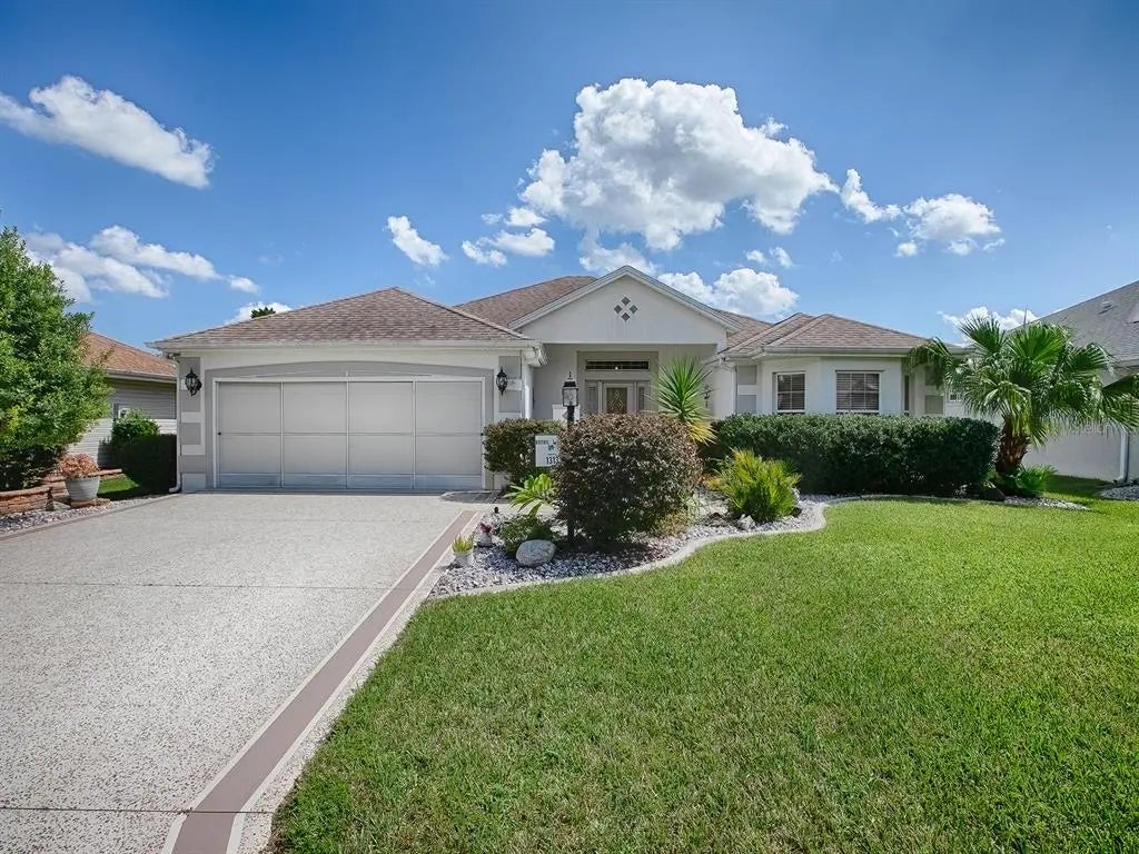 BOND PAID!!! Stunning "Grand Ficus" Model home in a sought after location!! Discover your dream home in the heart of vibrant Spanish Springs, where you’ll enjoy nightly music, dancing, restaurants, shopping, and the opportunity to make new friends! This beautifully designed "Grand Ficus" home boasts an inviting atmosphere with no bond and a wealth of amenities. As you step inside, you’re welcomed by soaring high ceilings and a bright, airy floor plan that effortlessly flows into an oversized living room. The expansive space is perfect for entertaining, seamlessly connecting to the dining area, a spacious kitchen, and an enclosed 4-season room featuring floor-to-ceiling windows, automatic blinds, transom windows, and plant shelves for your lovely decorations. The kitchen is a chef’s dream, equipped with an island, abundant cabinetry to keep your cooking essentials organized, and generous counter space ideal for preparing meals for a crowd. With two convenient doors leading in and out, this layout is perfect for easy flowing at gatherings and celebrations. Enjoy your morning coffee in the bright dinette, the cozy enclosed lanai, or on your open patio—each offering a unique space to relax and unwind. RECENT UPGRADES INCLUDE a NEW ROOF 2020, AC 2023,WATER HEATER WATER 2018, SOFTENER & FILTRATION SYSTEM 2019, new carpet and tile flooring in both showers all ensure peace of mind. Retreat to the spacious master suite, complete with an en-suite bathroom featuring dual vanities, a walk-in shower, and a large walk-in closet. An additional thoughtfully designed bedroom offers ample space and comfort, complete with a ceiling fan. This home is more than just a place to live; it’s a lifestyle. Don’t miss your chance to own this exquisite property near all the excitement in both Spanish Springs and Sumter Landing, or go for a nice golf cart ride to visit other town centers at Brownwood, Sawgrass, and opening soon Eastport town center.. Schedule your showing today!