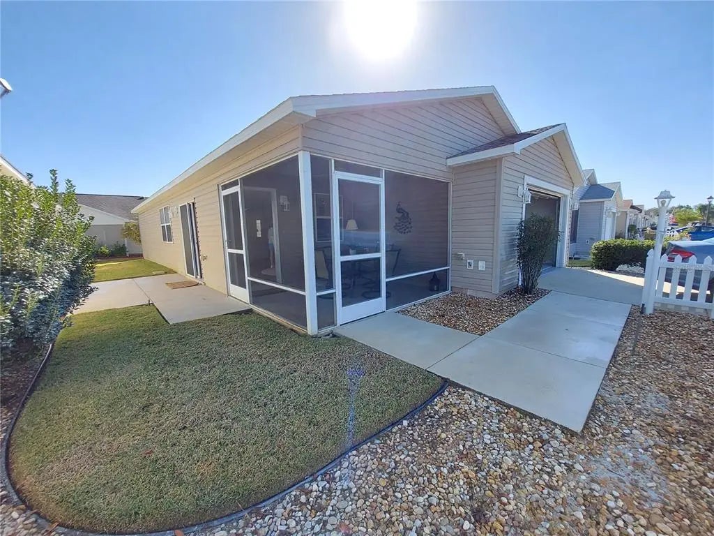 REDUCED BY MOTIVATED SELLER! Completely renovated CABOT COVE patio villa in KAYLEE VILLAS. Less thn a mile to Lake Sumter Landing! This villa is new from top to bottom - 2021 ROOF! In November/December 2022 the following all new items: HVAC, WATER HEATER, LVP FLOORS, 5"+ BASEBOARDS, INTERIOR PAINT, LIGHTED CEILING FANS, STAINLESS STEEL APPLIANCES, EPOXY PAINTED GARAGE FLOOR, all cabinetry removed and NEW CUSTOM KITCHEN and BATHROOM VANITIES all with GRANITE COUNTERTOPS installed. 2023 added NEW FURNISHINGS, WINDOW TREATMENTS, ARTWORK, ACCESSORIES, TURNKEY KITCHENWARE, LINENS, ETC.. This home is turnkey, ready for your personal use or would be a fantastic long term or seasonal rental. Ideal location two blocks to Caroline Pool & Mailboxes. - four blocks to Coconut Cove Family Rec Center - less than a mile to LAKE SUMTER LANDING with 16 restaurants, many retailers including Barnes & Noble, a myriad of medical offices including two urgent care centers, Old Mill Playhouse Movie Theater and FREE NIGHTLY ENTERTAINMENT on the square. Low bond balance $3,957. This property was occupied until end of November and not able to show for most requests. It is now vacant and easy to show. Call today to see it in person!