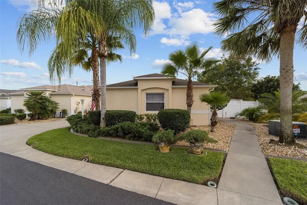 Available Immediately! This beautiful, CUSTOM 2/2 'WOODLAWN' courtyard villa, located in the Village of CALUMET GROVE, is waiting for you! Situated on a totally PRIVATE, SERENE, CORNER LOT in CAMERON VILLAS, this villa is UNIQUE! The lovely courtyard is SURROUNDED by MATURE TREES and GREENERY that attract a lovely array of WILD LIFE for your viewing enjoyment! You'll love just sitting on the OPEN LANAI and watching the activity! Not to be outdone by the beautiful, OUTDOOR surroundings, the INSIDE of the villa is COMPLETELY RENOVATED! DESIGNER COLORS, CROWN MOULDING and WOOD CORNICES adorn the walls, ceilings (knockdown finish - NO POPCORN!) and windows in every room! LUXURY VINYL TILE is installed THROUGHOUT, with the exception of CERAMIC TILE in both BATHROOMS. Speaking of bathrooms, they have been fully TRANSFORMED with all NEW FIXTURES, TILE SHOWERS and FRAMELESS, GLASS SHOWER DOORS. SOLAR TUBES light up both BATHROOMS during the day! The lovely, WHITE KITCHEN features a great BREAKFAST BAR, new HARDWARE and UPGRADED MATCHING SAMSUNG S/S APPLIANCES, including a GAS RANGE! The PRIMARY bedroom features an ENSUITE bath, WALK IN closet and WALK OUT to the LANAI. The 2ND bedroom features a DOUBLE, BARN DOOR entrance, built in QUEEN SIZED WALL BED (which makes it very versatile to be a den, office or bedroom) and ENSUITE bath. The LAUNDRY is equipped with a FRONT LOADING WHIRLPOOL WASHER & GAS DRYER set. Ideally you will have your own furnishings to help you really feel at home, however, the owner is negotiable to include furniture. On top of all the wonderful features, this home is in a GREAT LOCATION with easy access both in & out of The Villages with little traffic! CAMERON VILLAS is located across the street from the CALUMET GROVE Neighborhood Pool, very close to the Mulberry Regional Recreational Center & the “FIRST RESPONDERS” Recreation Center which features a Walk-in Resort Style Pool, GOLF Putt-N-Play Course, Pickle Ball, Platform Tennis, Arcade Room, Beach Volleyball, Fire Pit and more! If you're a golfer - it's less than a 5 minute golf cart ride to the Amberwood, Oakleigh, Walnut Grove and Briarwood Executive Golf Courses, the Nancy Lopez Country Club and the popular Pool Bar. Close to Shopping, Banking, Restaurants, the VA Center, and a short jaunt to catch entertainment and shows at the Spanish Springs & Sumter Landing Town Squares, and Savanah Center. The Villages Regional Hospital is only 12 minutes away! Call today to book your showing!