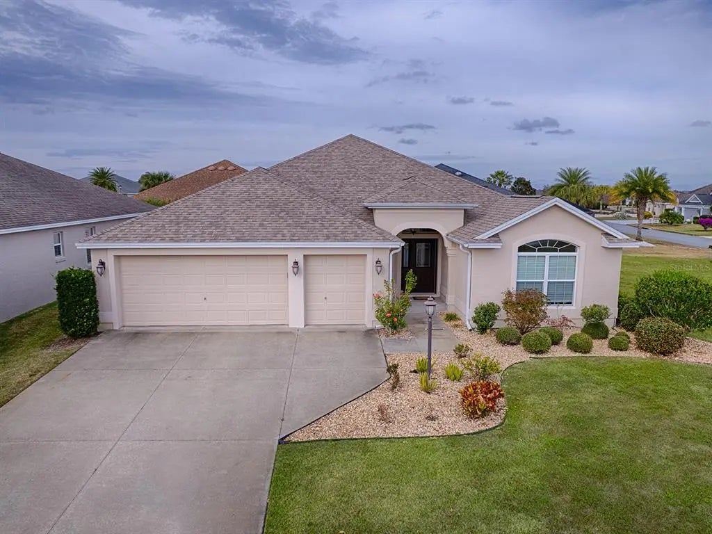 BOND PAID and BRAND NEW ROOF on the LOVELY 3/2 FURNISHED BEGONIA on LARGE PRIVATE CORNER LOT with ROOM FOR A POOL located in the Village of LAKE DEATON! Step inside through the attractive entrance with LEADED GLASS front door and sidelite to find lovely CERAMIC TILE FLOORING in the foyer, hallway, kitchen, laundry, and baths with LUXURY VINYL PLANK flooring throughout the dining and living rooms. The spacious kitchen offers CHERRY CABINETRY, LOVELY GRANITE countertops, SUBWAY TILE backsplash, STAINLESS appliances including a smooth top electric stove and bottom freezer refrigerator, pot drawers, a closet PANTRY, a breakfast bar (enhanced with lovely tile front and lighting), and an EAT-IN casual dining nook! There is a large more formal dining room – great for friends and entertaining as well as the spacious living room. This living area opens with STACKBACK sliding glass doors out to the screened lanai offering privacy landscaping and even more PRIVACY from the large CORNER LOT. Enter the guest suite through a pocket door where you’ll find 2 guest rooms and a guest bath. The front guest room has carpet, vaulted ceilings, a ceiling fan and a large window with transom offering a great view of the lake across the street. This room does not have a closet and many use it for a den/office. The other guest room has a nice large double door closet. There is a linen closet in the hallway and the guest bath has a tub/shower. The primary bedroom has a tray ceiling and an EN-SUITE bath with 2 WALK-IN closets. The primary bath has dual vanities, pocket door on the private toilet room, a linen closet, and a lovely tiled WALK-IN ROMAN shower with a glass block window for lots of natural lighting. The inside laundry room has a built-in sink with extra cabinets and the washer and dryer do convey with the home. You’ll love all the space in the 2 car+ GOLF CART GARAGE! REMEMBER everything in this lovely home is INCLUDED! This is a great location just a quick ride to GOLF, RECREATION and all the fun and dining opportunities that BROWNWOOD PADDOCK SQ. has to offer. You can also enjoy the nearby EVANS PRAIRIE GOLF COURSE as well as the incredible Eisenhower Regional Recreation Center!