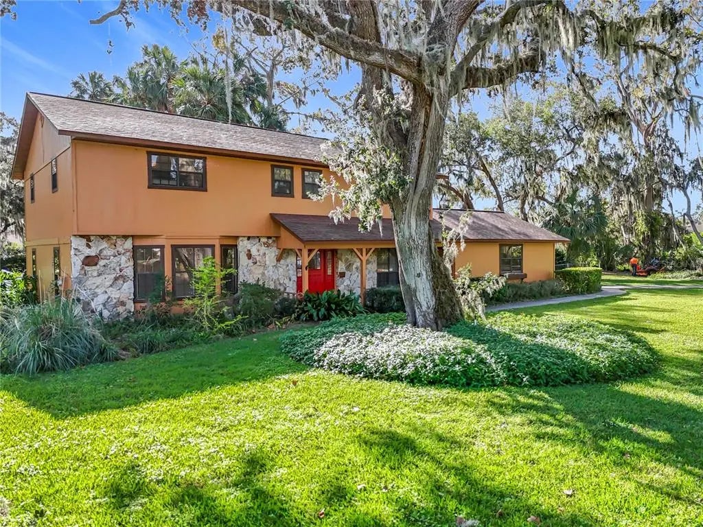 Searching for your family home with room to grow or just want plenty of room to spread out? Look no further than this two story home on .65 acres in the city of Tavares. Located on a dead end street, this spacious 4 bedroom, 2.5 bathroom home offers many features. Multi-level styling, with bedrooms upstairs and ample living space on the main level which includes the kitchen, a dinette, formal living room, formal dining room, family room, and laundry room with a half bath. If a wood burning fireplace has always been on your list of must haves - this home has two, both with a beautiful hearth and stone detailing; one in the family room and one in the primary bedroom which includes a laundry chute directly into the laundry room below. Dedicated office space on the second floor has two windows that overlook the front yard and offers a lake view just beyond the towering oak and cypress trees. If green space is an appreciated feature, you will have the added benefit of a private well on the property specifically for irrigation as you enjoy the large, private, fenced in backyard with a 23X18 concrete patio or select the covered front porch with an alternate view. In the attached two car garage you will find overhead attic space along with separate dry box wood storage which has direct and quick access to the family room fireplace. This all comes together just a few miles from historic Mt. Dora and only minutes from downtown Tavares by car or golf cart in the well-established neighborhood of Banning Beach. Convenient to the amenities, shopping, schools, lake and outdoor activities, healthcare and entertainment. If a serene setting and no HOA appeals to you, this is the home for you.