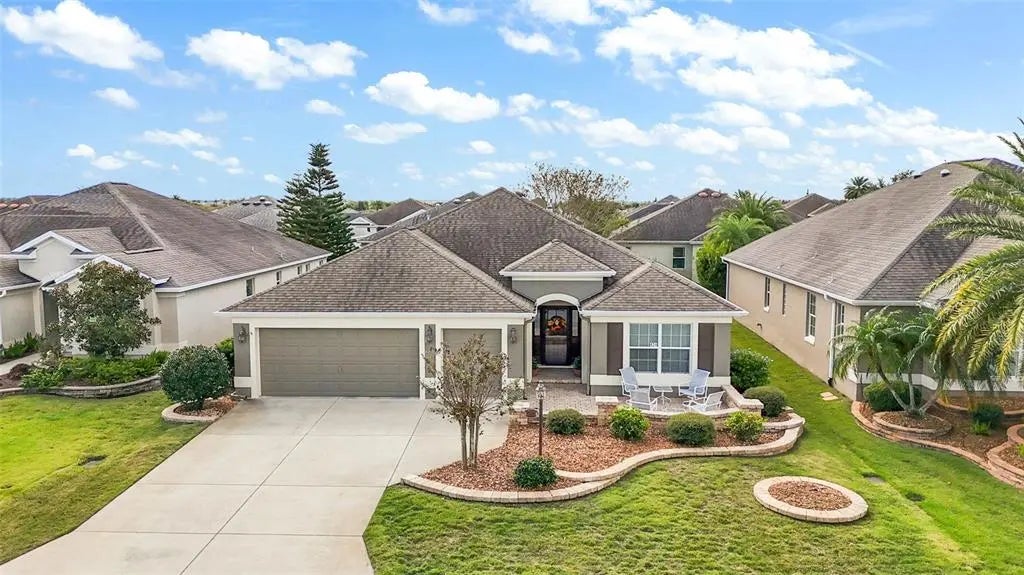 You will not want to miss this stunning designer Iris model with 2-car plus golf cart garage. This home is located in one of the most desired areas of the Villages, on a cul-de-sac and has curb appeal galore. This list of upgrades inside and out is lengthy. The split bedroom plan allows for privacy for you and your guests. The primary suite boasts a spacious walk-in closet. Coat closet located in the spacious entry way. New AC unit in 2024. Large backyard with privacy and room for a pool.