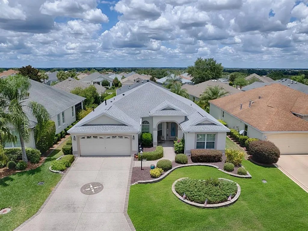 VILLAGE OF MALLORY ~ Great Location ~ 3/2 Gardenia with beautiful curb appeal showcasing the stacked stone easy maintenance landscaping. Kitchen has lovely Corian counters with a beautiful backsplash ~~ GAS COOKING ~~ Stainless Steel Appliances, Large Kitchen Island with Extra Storage, Pullout Shelving in Pantry and Double Pullouts in Lower Cabinets. This is a Split Design Floor Plan with guest suite on opposite side as Primary Suite. Your Guests will have a privacy pocket door with one bedroom adorning the Murphy Bed, built-in Desk System and no closet. Both have Laminate Flooring. The Guest Bath has a Tiled Shower. Primary Suite has Beautiful Laminate Flooring, Double Closets!! And Plantation Shutters. Primary bath has Double Vanity, Marble Counters and a Tiled Step In Shower. Enjoy your GLASS ENCLOSED LANAI with STACKABLE SLIDERS, Tiled Floor and Privacy Shades. Garage has Pull Down Stairs with Extra Storage, PAINTED FLOOR and WHOLE HOUSE WATER FILTRATION SYSTEM!! Go to LAKE SUMTER LANDING in you GOLF CART in minutes!! Pools ~ Golf Courses ~ Recreation Centers and Country Clubs are so close!! MAKE THIS YOUR NEXT HOME. Roof 2022. HVAC 2021. Bond $12,275. Come See This One!!