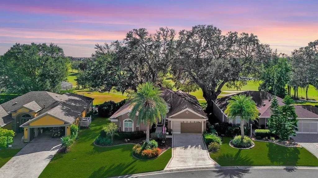 BOND PAID! This stunning 3-bedroom, 2-bathroom designer home offers an AMAZING PANORAMIC VIEW of the Glenview Championship Golf Course, creating an unparalleled backdrop for your Florida lifestyle. The fantastic curb appeal begins with the bay window elevation, enhanced landscaping, epoxy-painted driveway and garage, and a welcoming front storm door. Inside, you’ll immediately appreciate the luxury vinyl flooring that adds style and warmth to the home. The kitchen is a chef’s delight, featuring White Bay cabinetry, a gas range, granite countertops, and a solar tube for natural light. The second bedroom is versatile with a built-in office and Murphy bed, making it perfect for guests or working from home. Relax and unwind in the enclosed lanai while taking in the breathtaking views of the golf course. Additional upgrades include rounded drywall corners, volume ceilings, plantation shutters, California closets throughout, and a floored attic with pull-down stairs for added storage. The roof was replaced in 2019, and the HVAC system was updated in (2015, ensuring peace of mind for years to come. This exceptional home is the perfect blend of comfort, style, and location!