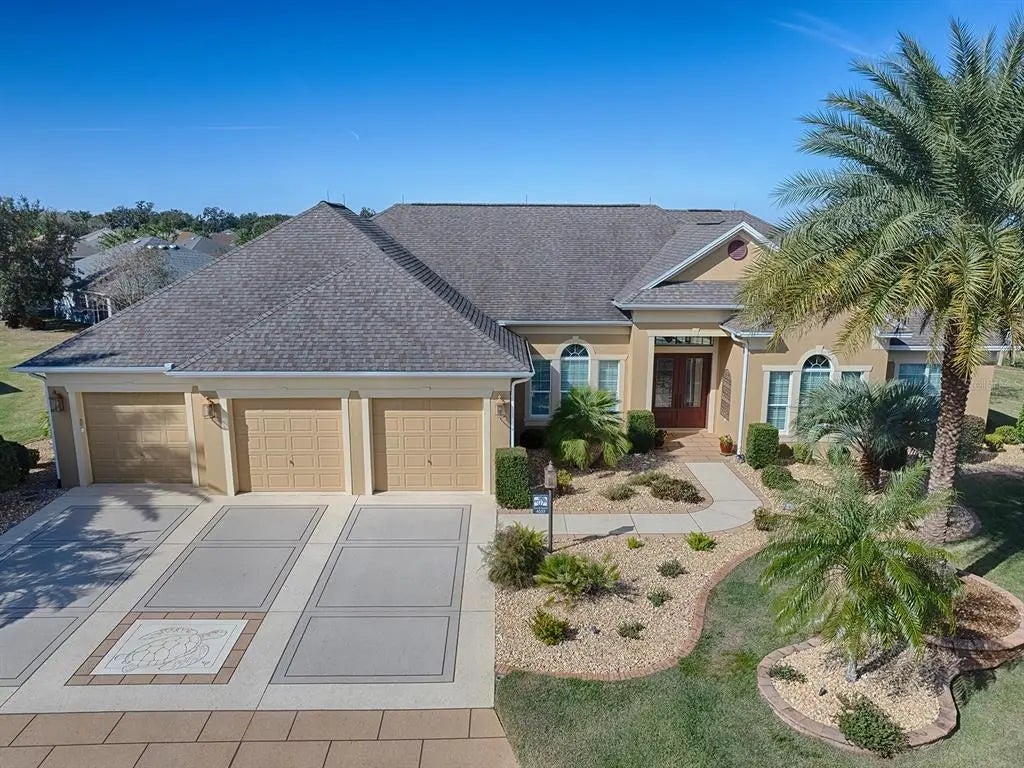 LOVELY 4 BEDROOM, 3 BATH, GRANDVIEW PREMIER with OVERSIZED 3 CAR GARAGE, with AN AMAZING HEATED POOL and OUTDOOR LIVING SPACE on an OVERSIZED LOT with PRIVACY in a QUIET CUL-DE-SAC located in the VILLAGE OF LAKE DEATON! This beautiful home offers lovely curb appeal with CUSTOM CONCRETE COATED DECORATIVE drive and walkway, stacked stone curbing, rock beds, and indigenous shrubs and palms. ELEGANT double LEADED GLASS front doors with transom enhance this appeal and entrance. You’ll find LOVELY TILE flooring in the foyer, living and dining rooms, kitchen, family room, and hallways with STUNNING BAMBOO HARDWOOD flooring in all of the bedrooms. This “GRAND” floor plan offers features rarely seen in many homes. The WET BAR is a great addition, fully equipped with a beverage refrigerator, built-in wine rack, sink and plenty of cabinet space. And the Butler’s Pantry is another useful area right off the kitchen. The kitchen has LOVELY CHERRY cabinetry with GRANITE countertops, TILE backsplash, STAINLESS APPLIANCES, ICE MAKER, 2 WALL OVENS, under cabinet lighting, an island, a closet pantry with pull out drawers, and a WALK-IN PANTRY. There is CROWN MOLDING, CORNICES, and upgraded ceiling fans throughout the home with many tray ceilings trimmed in crown. This popular split floor plan offers privacy for you and your guest with the guest suite on the opposite side from the primary bedroom. The 2 guest rooms share a guest bath which offers a tub/shower. The 3rd guest room is off the foyer and is a popular room for an office but it does have a closet. The primary bedroom has a door that leads out to the pool area and an EN SUITE bath with 2 large walk-in closets, granite counters, dual sinks, a vanity, and a ROMAN SHOWER! You’ll love the outdoor space with the HEATED POOL, SUMMER KITCHEN, a POOL BATH, plenty of room for entertaining, upgraded lighting around the pool area, and COMPLETE PRIVACY! The SUMMER KITCHEN has a Blaze Gas Grill and HOOD, refrigerator, granite countertops, and sink and bar area. And wait until you see the OVERSIZED 3 CAR GARAGE with custom Polyaspartic coated flooring! With over 1000+ sf, this garage offers plenty of room for your cars, golf carts, anything else you need to store! Convenient workbench with a sink, ceiling fans, insulated garage doors, and pull down attic stairs! Other features this lovely home offers is a CENTRAL VACUUM SYSTEM, Sonos Sound System, A-1 Lighting System, additional attic insulation in the entire home as well as the lanai and garage, and expanded landscaping in the front and rear. This is a LOVELY home in a great location whether it’s GOLF, RECREATION, SHOPPING, DINING, or ENTERTAINMENT that you’re looking for, it’s close to home! The Evans Prairie Championship Golf Course, the Eisenhower Recreation Center, and Brownwood Paddock Square are just a short golf car ride away! COME SEE THIS LOVELY HOME TODAY!