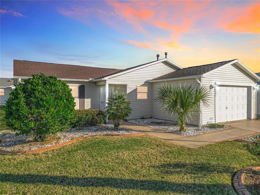 Welcome to this delightful 3 Bedroom 2 Bathroom 1240 sqft Corpus Christi Ranch-Style Home, centrally located in the heart of The Villages, within the highly sought-after Village of Tall Trees. This charming home is ready to become yours today! Enjoy the peace of having a BRAND NEW ROOF in 2024, NEW HVAC in 2023, and newer appliances, such as the refrigerator, stove, dishwasher, microwave, and disposal, all upgraded in 2022. The kitchen and bathrooms showcase elegant GRANITE COUNTERTOPS, adding a touch of modern luxury to the home. The home features mostly TILE FLOORING and NEW LAMINATE FLOORING in the Primary Bedroom, a practical and durable choice for Florida living, ensuring easy maintenance. Start your day or wind down in the spacious, fully enclosed lanai, perfect for relaxing with your morning coffee or evening refreshments. The attached garage provides ample storage for a full-sized vehicle, golf cart, and more. The thoughtfully designed SPLIT FLOOR PLAN separates the primary suite from the guest bedrooms, offering you and your guests privacy. The primary bedroom boasts a large walk-in closet, providing abundant storage for your wardrobe and accessories. This move-in-ready home makes your transition seamless as you begin enjoying The Villages' lifestyle. Don't miss the opportunity to make this inviting home your own and enjoy all the comfort, convenience, and charm it provides!