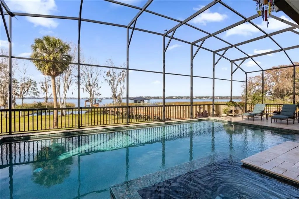 Welcome to your lakefront oasis in the exclusive gated community of Deer Island, where elegance meets the beauty of Lake Dora, part of the Harris Chain of Lakes. Situated on .93 acres with approximately 126 feet of lake frontage, this remarkable 2020 custom-built residence offers 4 spacious bedrooms and 3 luxurious bathrooms and a 4-car garage, capturing sweeping lake views from numerous vantage points. Step outside to the expansive screened-in lanai featuring a heated saltwater pool, a custom outdoor summer kitchen, and generous space for relaxing or dining al fresco, all while taking in magnificent views of Lake Dora and downtown Mount Dora’s city lights. For boating enthusiasts, the private boat dock and boathouse include an electric lift, putting you approximately 5 minutes by boat from historic downtown Mount Dora and approximately 10 minutes from the vibrant waterfront of downtown Tavares. The open floor plan blends modern sophistication with comfort, perfect for both quiet evenings and grand entertaining. The airy layout is adorned with elegant upgrades including crown molding and plantation shutters which exude refined style. The living room features exquisite coffered ceilings, creating a grand yet inviting atmosphere, while stacking sliding glass doors in both the living and dining areas seamlessly extend your living space to the expansive screened-in lanai. The gourmet kitchen is a masterpiece of design, showcasing sleek quartz countertops, soft-close cabinets and drawers, high-end appliances including a 6-burner gas cooktop, and premium finishes that cater to both beauty and functionality. The 4-car garage equipped with EV charging ensures ample storage and convenience for every lifestyle. Every detail of this home has been thoughtfully curated to capture the essence of lakefront coastal luxury while maximizing comfort and livability. Whether relaxing indoors or enjoying the outdoors, the combination of elegance and idyllic views makes this property a truly exceptional retreat on Deer Island. Deer Island is a stunning 400-acre natural paradise nestled between Lake Dora and Lake Beauclair, and features an awe-inspiring, privately-owned 18-hole championship golf course, recently named one of America’s Top 50 Public Golf Courses. It also ranks as #5 in Top 25 Florida Courses. Experience all the unique features of this exceptional home—schedule your private tour today!
