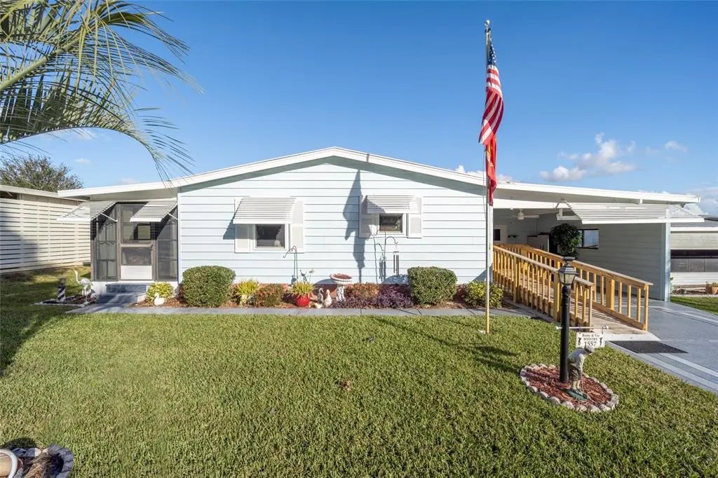 Located in The Village of Country Club Orange Blossom Gardens. TURNKEY! NO BOND, NO ANNUAL MAINTENANCE FEE. Luxury Vinyl Plank Flooring. Close to Pool, Country Club and 2 Golf Courses. Walk Down the Painted Concrete Driveway/Walkway and Carport and Enter this Home via a Ramped Entry to the Front Leaded Glass Door. The Kitchen Cabinets and the Entire Interior has been Freshly Painted. White Cabinets and Agreeable Grey Walls. All Kitchen Appliance were new in 2020. Vaulted Ceilings make this home look much bigger than it is! The Spacious Living Room has a Sliding Door to the Florida Room. The Florida Room is Enclosed with Vinyl Stackable Windows and a Door to the Front Walkway of Home. The Primary Bedroom has a Built-In Closet an En-Suite Bathroom with a Step In Shower and Handheld Shower Head. The Guest Bedroom has a Built-In Closet. Guest Bathroom boasts a large step In Shower with Bench Seat, Grab Bar and Handheld Shower Head. Want a Golf Cart Garage?? You Got it!! The Attached Utility Room/Golf Cart Garage is home to the Washer/Dryer and Tool Bench with many tools included! The Carport has Extra Cabinets and an Extra Refrigerator, Perfect to keep those drinks Cold!! This Home is being Offered Turnkey, everything you see is included. Roof: Membrane HVAC: 2024 Water Heater: 2025. This Home is a Must See!!