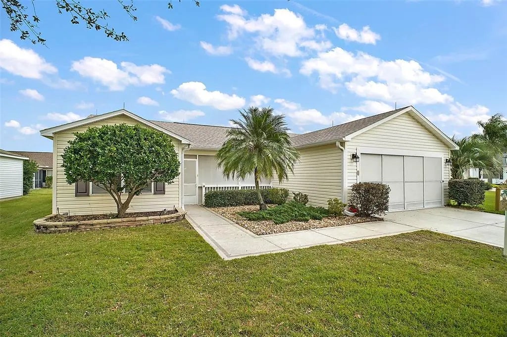 Location, Location, Location!! Come and see this Furnished, Move-In Ready, 3 Bed, 2 Bath, Amarillo model home with a large back yard (ENOUGH ROOM FOR A POOL) nestled on a quiet cul-de-sac in the Village of Liberty Park. **NEW ROOF in 2020 -- NEW A/C in 2022 -- BOND PAID** Home is in a convenient location close to both Lake Sumter Landing and Brownwood Town Squares. Some features of the home include: Enclosed lanai with sliding windows and screens, LARGE BACK YARD, retractable garage door screen, Whole House Water Filtration System, roman shower in master, composite counter-tops in kitchen & baths, upper and under kitchen cabinet lighting, 3 Solar lights, laundry room, and PLANTATION SHUTTERS in the Livingroom & Kitchen. Plenty of shopping, restaurants, golf courses, grocery stores, doctors offices, banks and recreation centers are only a short golf cart ride away. The home comes mostly furnished and includes the following items: All appliances, Washer & Dryer, Refrigerator in the garage, Shelving and cabinets in garage, 3 Flat screen TV's, Full spare bedroom set, All Living room and dining room furniture, 1 Single Bed, 2 Recliners, All Lanai furniture, Portable Heater, TV stand, Desk, Rolling chair, filing cabinet and paper shredder. Golf Cart is negotiable.