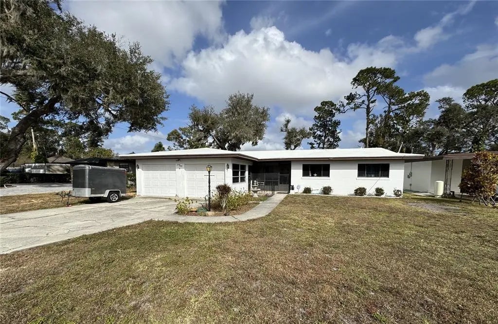 JUST REDUCED! Seller is Motivated! This property offers a rare opportunity to own a charming, solidly built block home on the picturesque shores of Lake Mariana. Stepping into the sunroom, you'll be greeted by expansive views of the lake and surrounding Florida wildlife, thanks to its full-window enclosure stretching across the width of the home. Situated on just more than a third of an acre, the property features two large storage sheds at the back of the lot, near the boat dock area. Although the boat dock was damaged in a hurricane, the remnants still provide a guide for constructing a new, upgraded dock. The home’s inviting screened-in front porch is a perfect spot to relax and welcome guests. From here, you have the option to enter through the main front door or directly into the kitchen, which offers convenient access from the garage for unloading groceries. Built in the 1950s, this home reflects the style and charm of its era, with generously sized family and bedrooms. The kitchen and bathrooms boast ceramic tile, while the family and bedroom areas are carpeted. Knotty pine paneling adds a nostalgic touch, found in both the dining and family rooms, as well as the garage ceiling. A separate two-car garage with openers provides ample space for parking and storage, and the washer and dryer are conveniently located in the kitchen and garage, respectively. With its classic charm, lakefront views, and thoughtful layout, this home is truly a remarkable find!