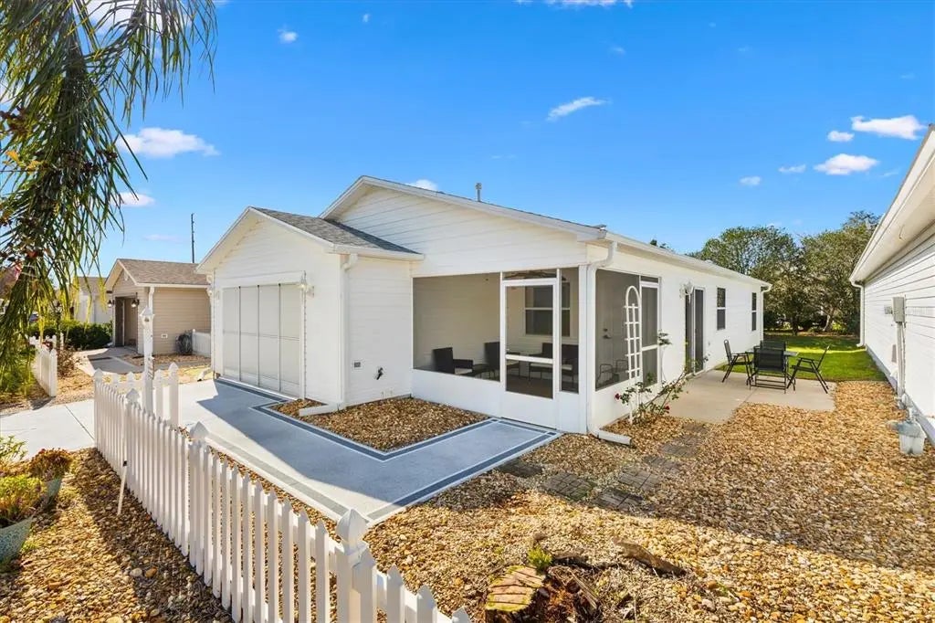 TURN-KEY- FLORIDA EASY LIVING awaits! BOND PAID - This turnkey 2 Bedroom / 2 Bath Colony Patio Villa in The Village of Woodbury, in The Villages, Florida, is ready to call your own. This home offers minimal exterior upkeep, allowing time to GOLF all day in the SUNSHINE! Easy care laminate flooring in the living area. The open kitchen features Cambria Quartz countertops and stainless steel appliances (Microwave 2023), a breakfast bar to separate LIVING & DINING rooms, and a SOLAR TUBE for natural light. PRIMARY SUITE offers a walk-in closet and en-suite with a second solar tube. The second bedroom has easy access to the GUEST BATH with a third solar tube. The roof was replaced in August 2022, the HVAC compressor was replaced in August 2021 with Broward Home Warranty until June 2025, and the gas water heater was replaced in 2022. The driveway was recently painted with a decorative design. Enjoy The Villages, FL, lifestyle with abundant amenities for you to attend golfing, shopping, dining, and enjoy many entertainment choices, club meetings, medical services, and more, all accessible by a golf cart. Call for your showing today!