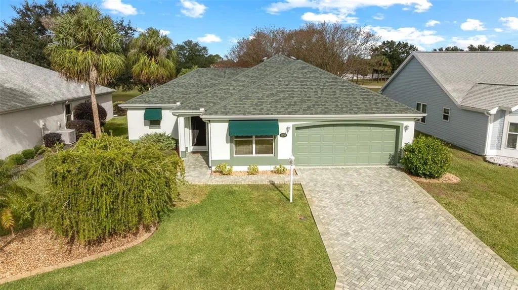 *NO BOND* *Golf Course View!* Welcome to this beautiful designer Sedona model 2-bedroom, 2-bath home, spanning 1,322 square feet, perfectly situated on the *8th hole of the Tierra Del Sol Championship Golf Course*, one of The Villages' most challenging and scenic courses. The welcoming paver driveway and walkway lead you to the beautiful glass front door and tiled foyer. Inside, the kitchen features stainless steel appliances, ample countertop space, and a cozy breakfast nook. The living room boasts laminate flooring, high ceilings, and a seamless flow to the enclosed lanai with stunning views of the fairway. The guest suite offers laminate flooring, a walk-in closet, two linen closets, and serene golf course views. The master suite includes a spacious walk-in closet, laminate flooring, and a renovated ensuite bathroom with dual vanities, tiled flooring, and a modern walk in shower. Indoor laundry utilities provide convenience, while the home mature landscaping adds charm and curb appeal. **360 Tour: https://app.cloudpano.com/tours/aqkraceA2 Located just minutes from top Villages destinations: 2 minutes to Tierra Del Sol Country Club 4 minutes to The Villages Hospital 6 minutes to Spanish Springs Town Square 10 minutes to Lake Sumter Landing Roof, HVAC 2016 Hot water Heater 2010