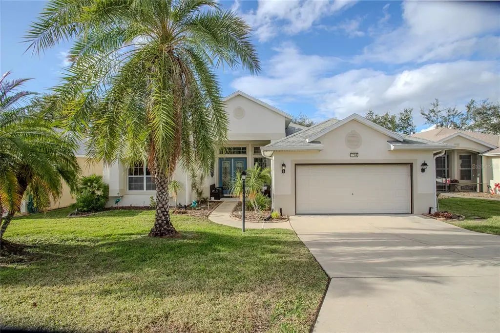 This immaculate, custom built, expanded, and upgraded Huntley model home will not disappoint, and is move-in ready. It is located in Royal Harbor, an active adult 55+community on the Harris Chain of Lakes. From the moment you drive through the gates, you are greeted by lush, tropical landscaping and a peaceful feeling that says you are home. This home welcomes you and your guests, beginning with the inviting covered entry and gorgeous double, leaded glass front doors and transom windows. The impressive Great Room welcomes you with warm and beautiful hardwood floors, high tray ceilings, an open concept, and triple sliders that open to the Lanai. The very spacious Kitchen is convenient to all the living areas, and has been tastefully upgraded to include abundant Corian countertops and cabinets with pull-outs, a center island with lots of storage, custom stained glass in windows, upgraded high-end stainless steel appliances, gas stove with air fryer, breakfast bar, and more. Truly a dream Kitchen! Just off the Kitchen is a pleasant Dinette/Morning Room with surrounding windows. From the Great Room, you can expand your living space to the welcoming Lanai with screened vinyl windows with sun shades, and wood-look tile floors, allowing you to enjoy this space year round. Retreat to the Primary Suite, where you will enjoy the rich wood laminate flooring, access to lanai, walk-in closets, and a private bath with jetted tub, walk-in shower and ample Corian counters. Bedrooms 2 and 3 share a nicely upgraded Guest Bath with walk-in shower. Between the Kitchen and Garage is a nice large laundry room with sola tube, sink, storage, and a convenient half bath. Out back, enjoy your large paved patio, perfect for grilling, gathering with friends, or just plain relaxing. Mature landscaping includes numerous fruit trees. Some of the additional upgrades include double pane windows, well insulated attic, New A/C late 2024, tubes in wall pest defense, and Tankless Water Heater. And this great move-in ready home is in a great community with so many amenities and activities for you to enjoy. Do as much or as little as you please. There is something for everyone here at Royal Harbor. There is even RV and boat Storage included in the HOA dues. Please call today for your private showing of this home and our community.