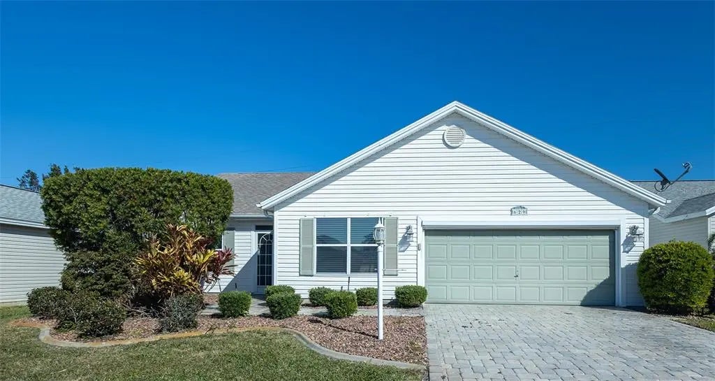 Charming Wisteria Model with Golf Course Views in The Village of De La Vista !-NO BOND. Welcome Home to this stunning 3-bedroom, 2-bathroom Wisteria model, perfectly nestled in the heart of The Village of De La Vista. Offering a spacious, open-concept design with vaulted ceilings and natural lighting from 5 solar tubes, this home is designed to delight at every turn. Interior Features: - No carpet! Enjoy the beauty and durability of laminate and tile flooring throughout. - A thoughtfully designed eat-in kitchen, perfect for casual dining or your morning coffee, complete with tons of cabinet space, pullout drawers, and newer stainless steel appliances. - Elegant granite countertops in the kitchen and both bathrooms, adding a touch of luxury. - Fresh, neutral paint throughout for a move-in-ready feel. - Tankless water heater for efficiency and endless hot water. Expanded Living Spaces: - Two additional rooms have been seamlessly added, providing flexible spaces ideal for a home office, den, or hobby room—all with serene views of the golf course. Outdoor Paradise: - Enjoy the open patio with pavers overlooking the golf course, perfect for entertaining or relaxing. - A covered pergola creates a designated BBQ area for al fresco dining and gatherings. Garage & Entryway: - A 21' deep extra-large 2-car garage offers ample space for vehicles, golf carts, and storage. - The pavered driveway and screened entry patio provide a welcoming and stylish curb appeal. Located in the heart of The Villages, this home combines comfort, style, and convenience with golf course views to enhance your lifestyle. Whether you're hosting friends, enjoying a quiet evening, or heading out to one of the many nearby amenities, this home is ready to meet all your needs. Don’t miss this incredible opportunity to live your best life in The Villages! Schedule your private showing today!