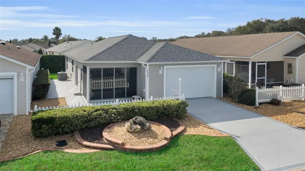 This TURNKEY well maintained Colony Patio Villa, in the heart of The Villages, is right where you want to be! This cute patio villa has it all! As you pull up you will notice the painted driveway, walkway, patio and epoxied garage floor and simple easy to maintain landscaping. The roof was just replaced in December 2024. The enclosed lanai has a tile floor and is currently used as a home gym. The open floor plan gives a spacious feel to the home. As a RARE find...there is an inside laundry space in the kitchen! The home boast laminate flooring in majority of the home. The bedrooms are nestled in the rear of the home and the primary bedroom has a large walk-in closet and step in shower in the ensuite. The guest bedroom is currently being used as an office. The home is being told TURNKEY, complete with a 2016 Yamaha gas golf cart.